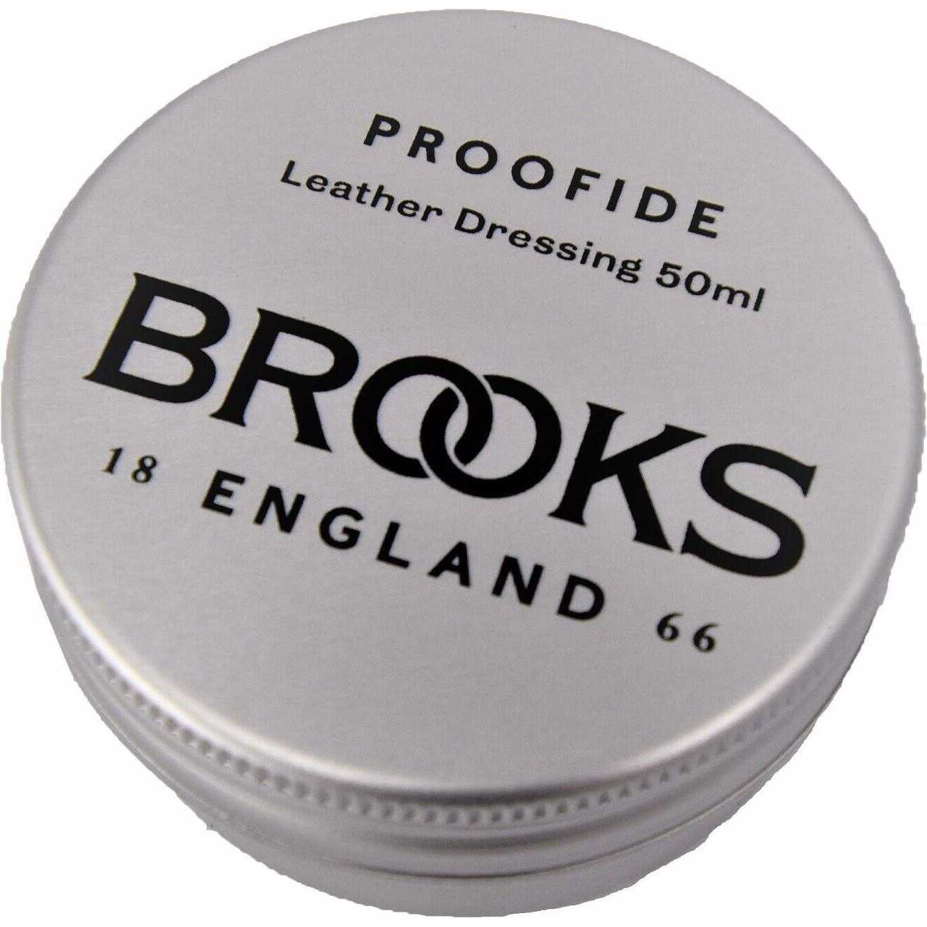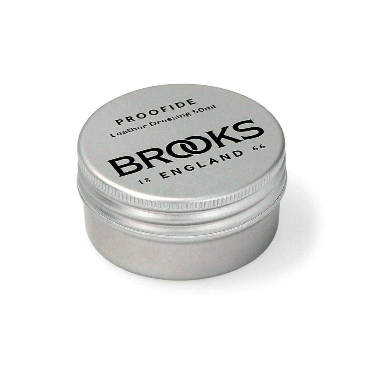 A new saddle should be treated with Brooks Proofide leather dressing to help assist the ‘breaking-in’ process. Proofide keeps the leather supple as it is specially formulated from natural ingredients to condition, preserve and shower proof your saddle. Proofide is the only substance that should be used to care for your Brooks Leather Saddle.Apply a little Proofide to the finished side of the leather. Allow the Proofide to permeate until dry and then polish off. Proofide should be used several times during the ‘breaking-in’ period and every 3-6 months thereafter. On bicycles not fitted with mudguards, an initial application to the underside of the saddle will be beneficial, this needs not to be polished off. The leather gets its colour during the tanning process and it is possible, therefore, that some colour residues will remain. It is recommended to polish the saddle with a soft cloth before first use.