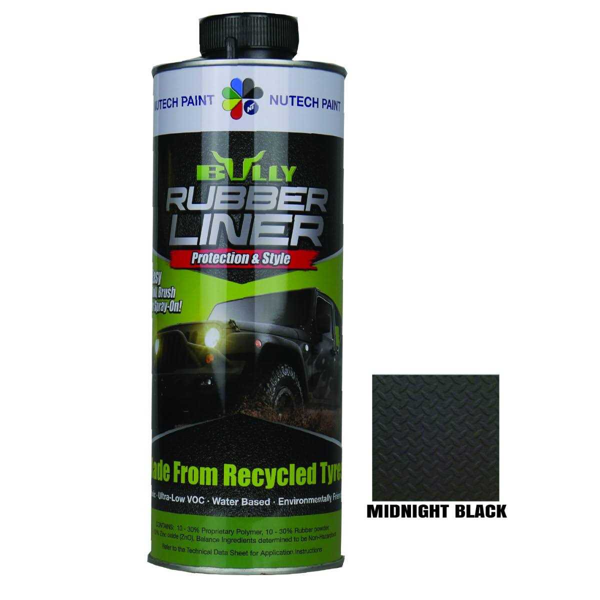 Is this product right for you? Bullyliner is made from Low-VOC, water based, single component technology. NO Waste, NO Mixing. Brush, roll or spray-on applications. Supplied Ready-To-Use. Bullyliner vulcanizes rubber on almost any surface including Metal, Concrete, Wood, Plastic and Asphalt all cured in ambient air. No special equipment needed and clean up is easy as it is water based.