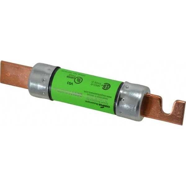 These 250VAC UL Class RK5 fuses are time delay and nonindicating. They tolerate temporary inrush currents without opening, which prevents nuisance-blowing from motor and equipment startups. Also called slow-blow Class RK5 fuses, these 200kA IR fuses open to disconnect an electrical circuit when exposed to sustained loads and short circuits. They have no indicator for identifying a blown fuse, so they’re sometimes used with an indicating fuse block or cover.UL Class RK5 fuses provide moderate current limitation for general use applications where more current-limiting RK1 fuses aren’t needed. These fuses have an interrupting rating (IR) of 200kA and are the same size as Class H and K fuses, but have a rejection feature that prevents an accidental downgrade from a current-limiting system. Their modified terminals ensure a match with the rejection clips in Class R fuse holders that prevent the installation of fuses with a lower interrupting capacity. They’re typically used in newer equipment, but can also be used with a Class H fuse holder to upgrade older installations from Class H or K fuses for improved overcurrent protection. They are current-limiting to prevent electrical damage by disconnecting circuits before they’re exposed to the full magnitude and duration of an overcurrent. Fuse, Class RK5, 100A, FRN-R Series