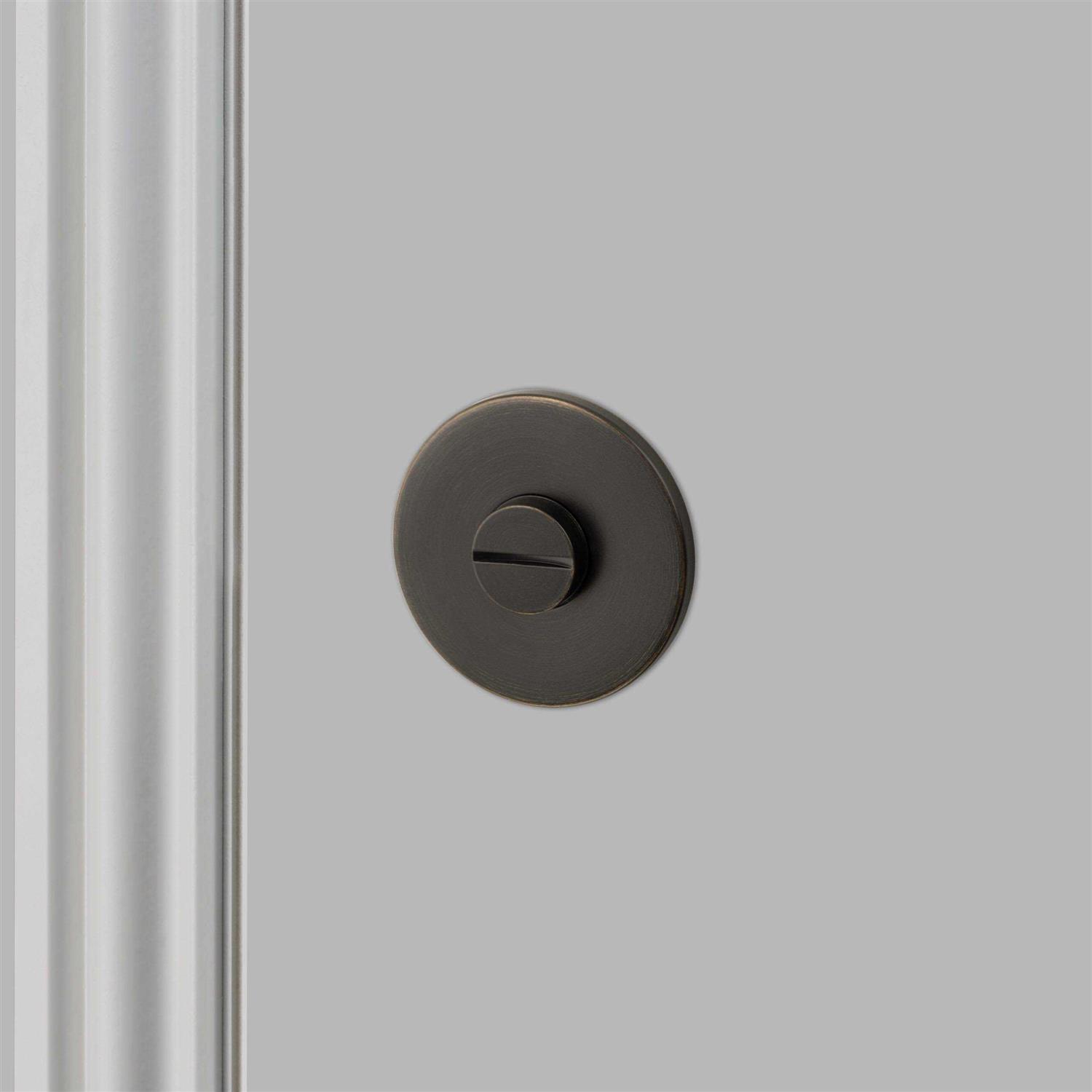 An indoor thumbturn lock made from solid metal featuring a solid knob with tactile diamond-cut cross knurling. Works on all internal bath room & toilet doors and includes a safety coin-release. It looks sublime combined with our matching cross door handles.