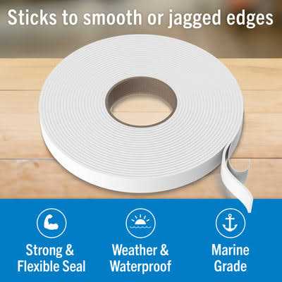 Butyl Tape by Better Boat. Details:Introducing our versatile and reliable RV Sealant Tape, a high-performance solution for repairing and sealing leaks in various applications. Designed to simplify the process, this butyl rubber caulk tape offers exceptional convenience compared to messy caulk or tube marine and RV sealants. It serves as an excellent RV window sealant, roof sealing tape, and is ideal for water heater installs, boat port holes, travel trailers, headlights, and more. With its extra-strong water resistance, this 1/8″ thick by 3/4″ wide sticky putty butyl tape effectively seals irregular gaps and cracks, creating a robust vapor barrier to keep unwanted water in or out. Its continuous gap-free 36-foot roll, supported by paper backing, ensures seamless sealing even around awkward and unusual shapes. Available in Black, White, or Gray, our tape adheres to a wide range of surfaces such as fiberglass, rubber, galvanized metal, aluminum, plastic, wood, and glass, including EDPM…