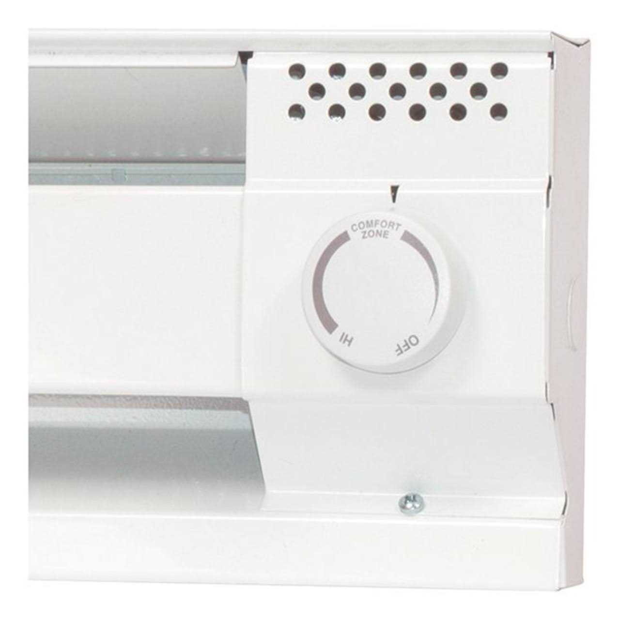 Cadet Thermostat kit is suitable for use with Cadet-F series electric baseboards. It is compatible with 120-Volts, 208-Volt and 240-Volt cadet standard baseboard heaters. 2-Pole Thermostat in white color, has current rating of 22-Amps. It includes thermostat, mounting plate and dial. Thermostat operates in a temperature range of 45 to 80 deg F. Kit eliminates the need for extra wiring.