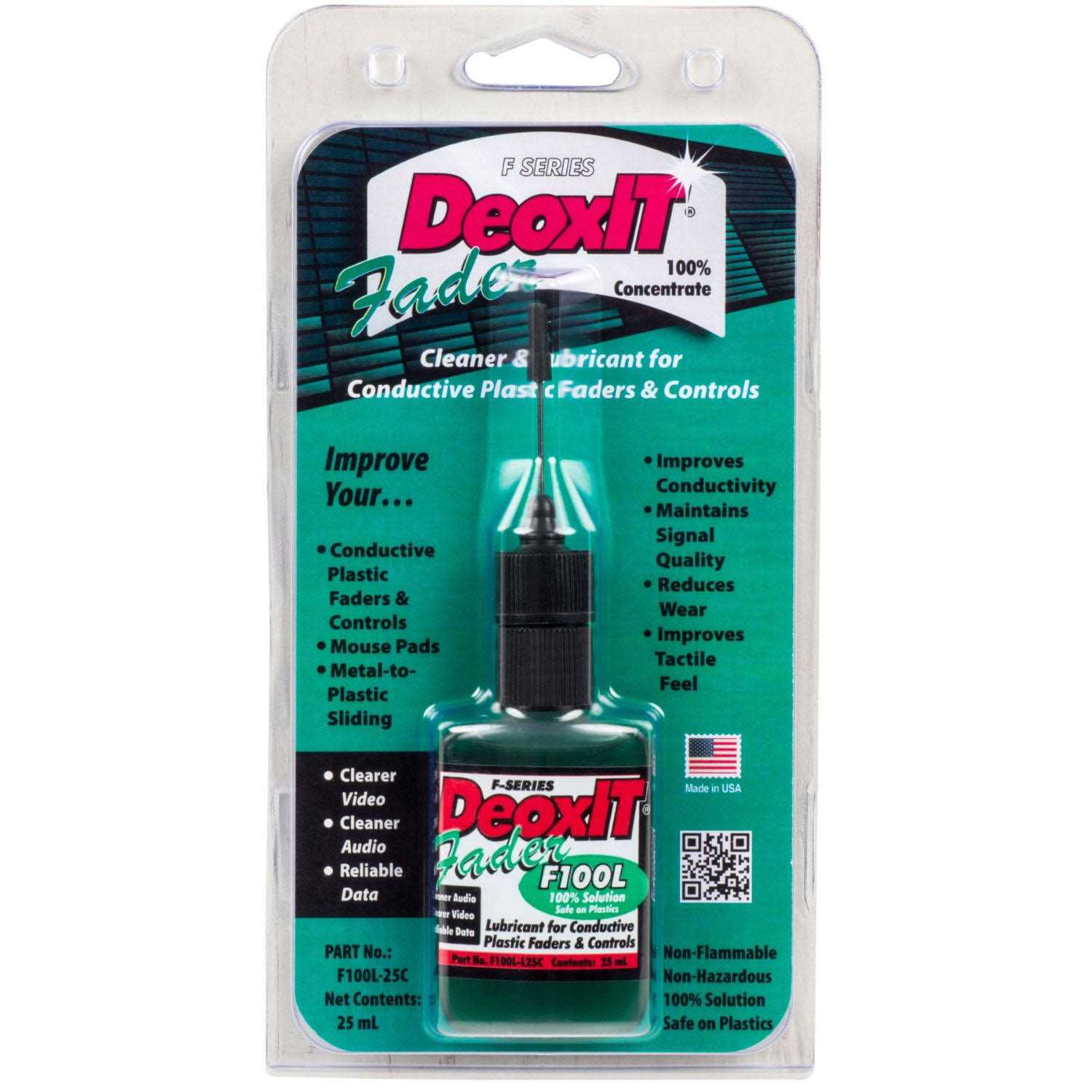 DeoxIT FaderLube (formerly CaiLube MCL). The DeoxIT brand has gained worldwide recognition as the best solution for fixing electrical connections. DeoxIT Fader Lube is a precision lubricant specifically formulated to improve conductivity and lubricate conductive plastic and carbon compound faders, switches and other similar components. Over time these components lose their original lubrication from wear and/or repeated cleaning. Dust, dirt, drink spills and other contamination also degrade the components’ lubricant. The need for re-lubrication is necessary to avoid excess wear and abrasion to the plasticsurfaces. Another use for DeoxIT FaderLube is on conductive membrane switches and components. Oil, grease and acids build up on the membrane surfaces due to repeated finger contact and can lead to device malfunction. Applying DeoxIT? FaderLube will provide a long-lasting barrier against these types of contamination. The oil, grease and acids will be displaced above the DeoxIT FaderLube layer preventing contact with the plastic membrane.