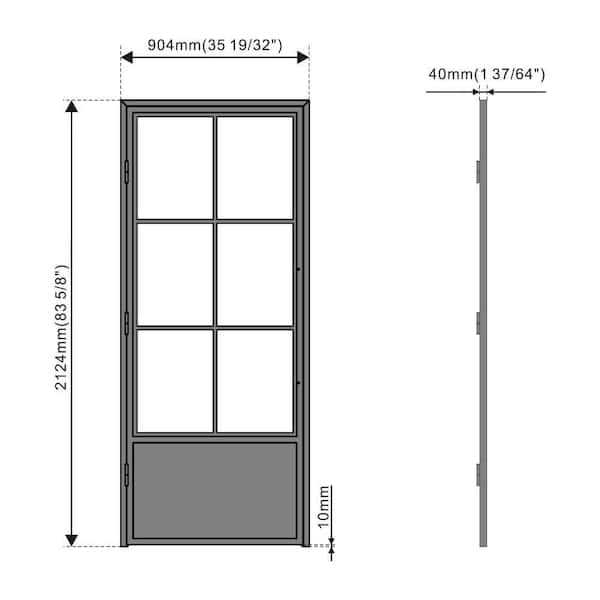 CALHOME 36 in. x 84 in. Right-Hand 6 Lite Frost Glass Black Steel Single Prehu