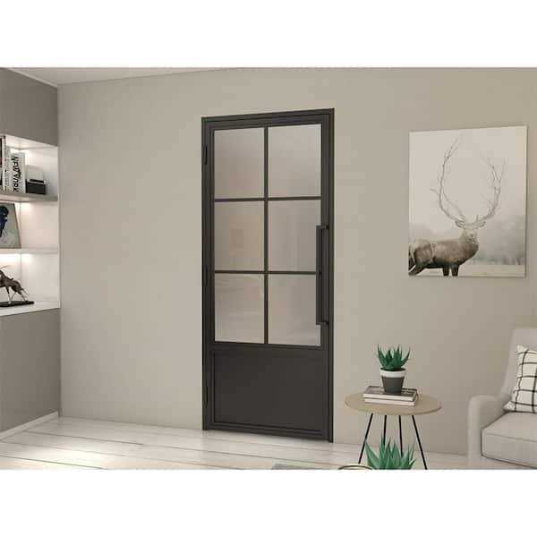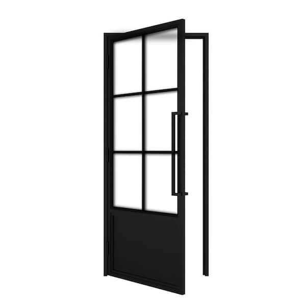 Calhome 36 in. x 84 in. Right-Hand 6 Lite Frost Glass Black Steel Single Prehung Interior Door with Door Handle
