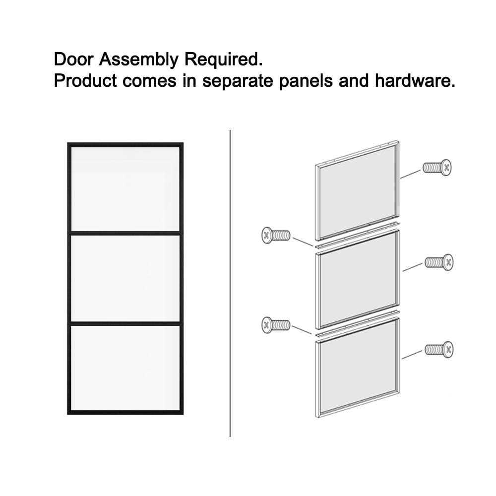 • Assembly required. door comes with 3 separated glass panels and takes just minutes to put together. all assembly hardware is included