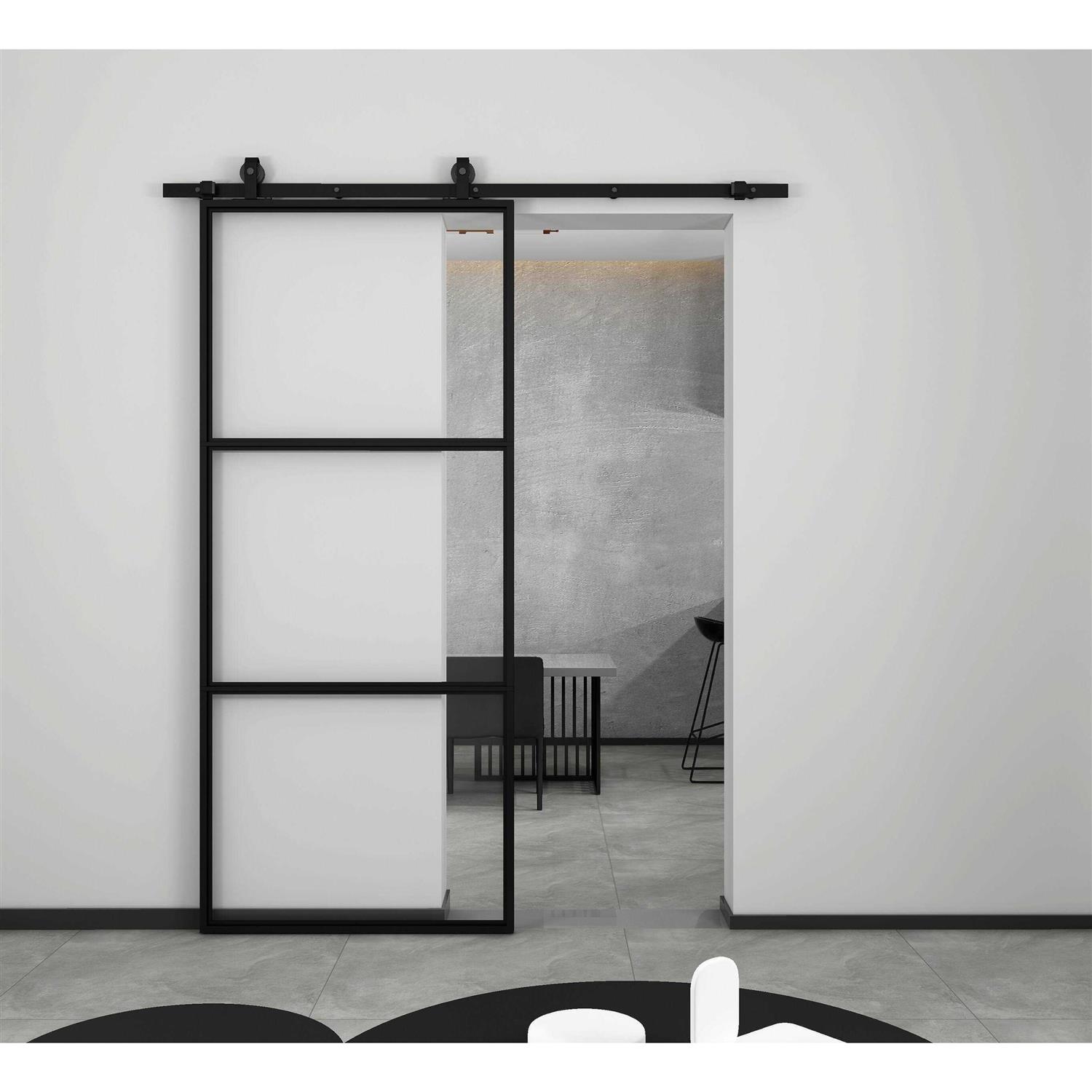 Calhome 36-in x 84-in Black Clear Glass Steel Single Barn Door (Hardware Included)