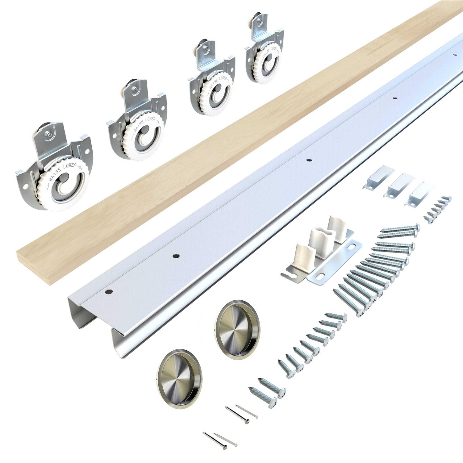 - Set includes 2 glass door panels and 1 bypass sliding hardware set; Track length: 6 ft (72 in).