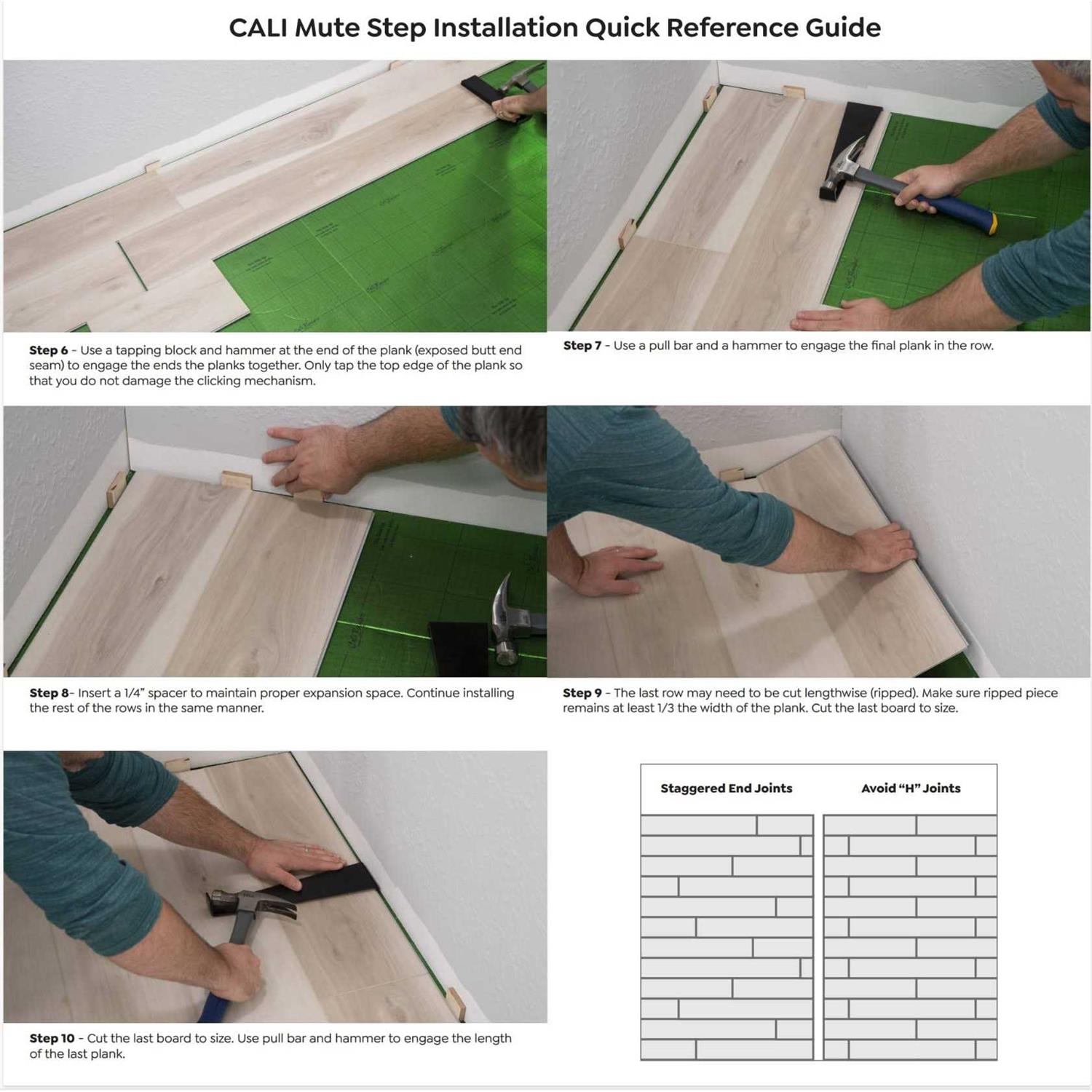 Made with professional-grade strength, CALI Vinyl is geared for projects that demand steadfast, 100% waterproof durability and can be installed and cleaned with ease. With a DIY-friendly design and beautiful hardwood imagery, this luxury vinyl plank flooring is ideal for fast transformations in any room. Planks are strengthened internally by an SPC core; a proprietary layer of flexible limestone composite which boosts stability and allows for stronger click-lock milling. An extra-scratch-resistant finish makes planks perfect for homes with pets, kids, and active, high traffic spaces. Never one to sacrifice style for performance, planks also feature authentic hardwood looks, high pattern variation, rich color options, and wood grain textures. Attached acoustic padding lines each plank, for a quieter, more comfortable flooring experience.
