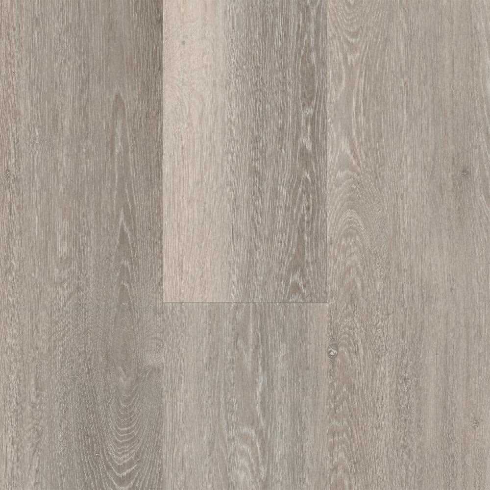 Faint coral undertones brighten a wash of light, pearl gray as elongated planks make rooms feel larger and more open. | Whitewater Oak Longboards Flooring Sample, with Diamond Finish by CALI Vinyl.