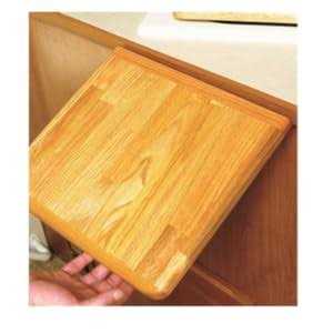 - Solid oak-finish hardwood extension mounts to your existing countertop with a metal piano hinge