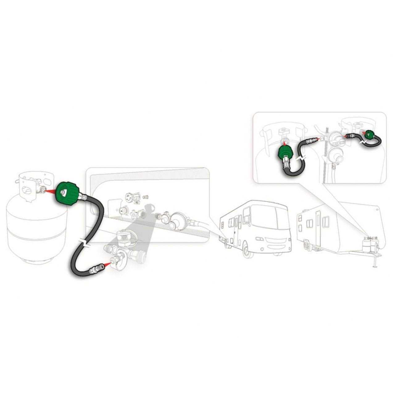 - The Camco 150cm Pigtail Propane Hose Connector is designed to connect a propane cylinder to an RV or trailer propane regulator