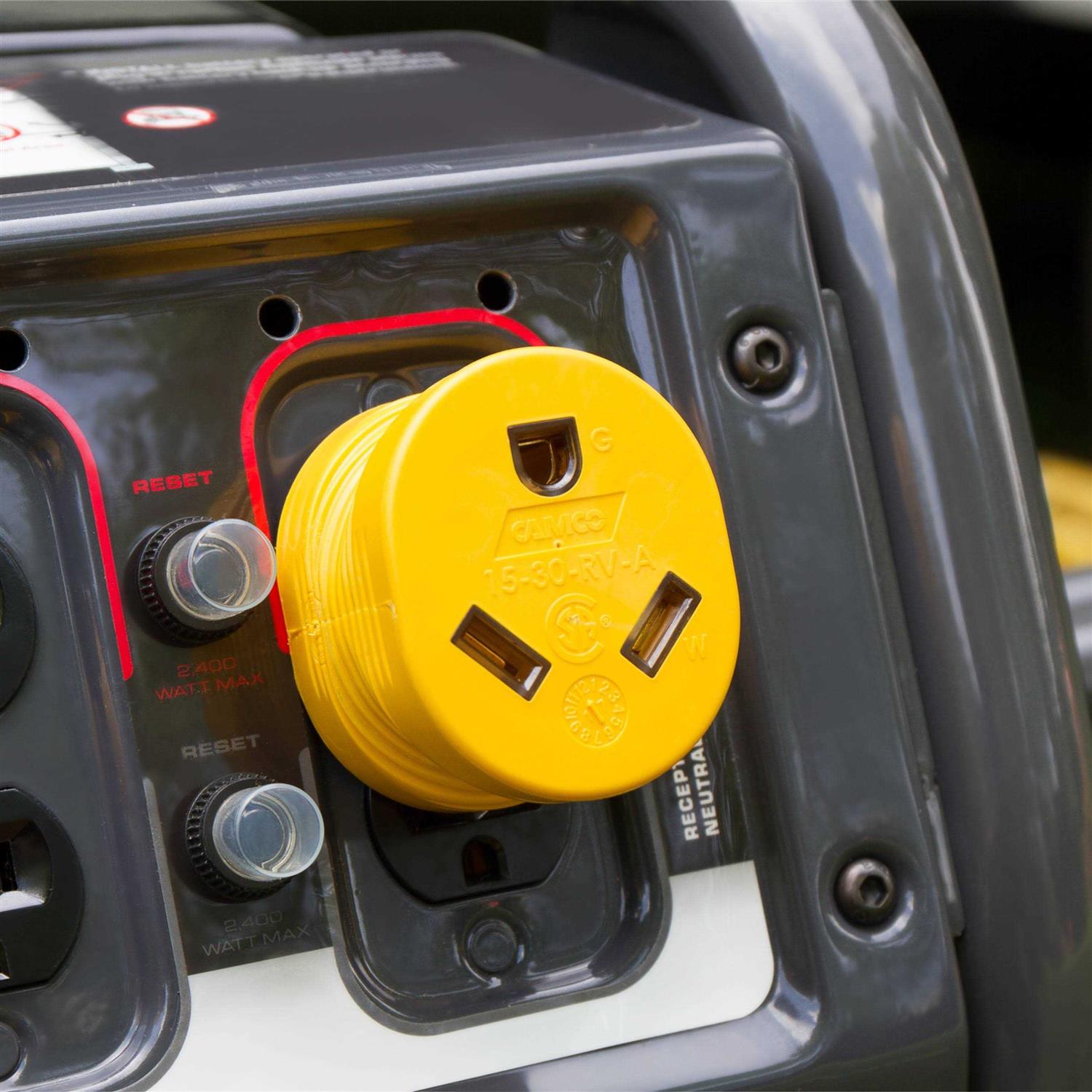 - For use when RV has 30 A power and needs to plug into 15 A power source.