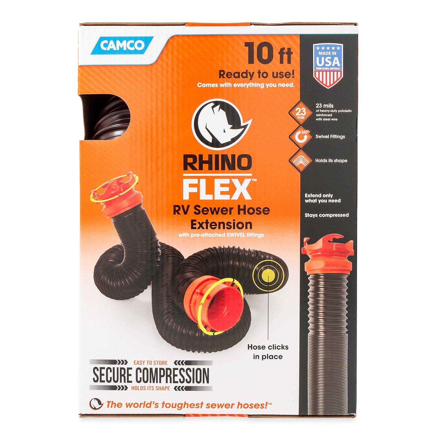Extend the reach of your Camco RhinoFLEX or other sewer hose with this handy kit. Includes 10-foot RhinoFLEX hose with pre-attached swivel lug and bayonet fitting. Patent pending. Works with any sewer hose that has a bayonet fitting.