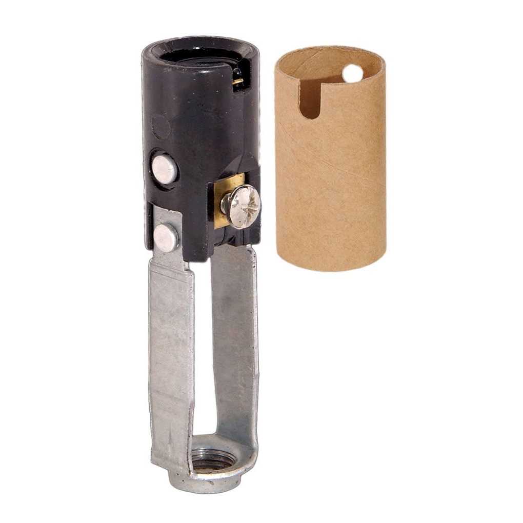 • E12, 75W-125V, Candelabra base, Keyless candle socket with 1/8 F hickey & paper insulator. 3″ ht.