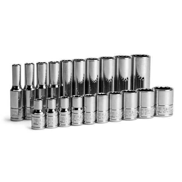 Capri Tools 1/4 in. Drive 12-Point Shallow and Deep Socket Set, SAE, 3/16 to 9/16 in, SAE, 20-Piece