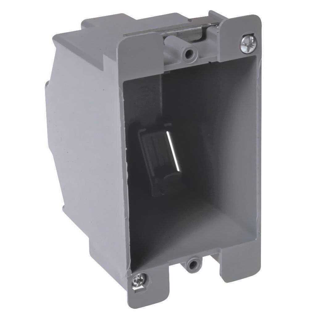 The Carlon B114R-UPC Switch Box is a 1-gang, 14 cu-in nonmetallic box designed for residential, light commercial, and manufactured housing projects. Made from high impact lightweight PVC, this blue switch box features clean and easy knockouts and pre-installed nails for convenience. It is suitable for use with nonmetallic-sheathed cable and is compliant with Article 370 of the current NEC. The box is compatible with a full assortment of round and rectangular covers and adapter rings, making it a versatile choice for various electrical installations.