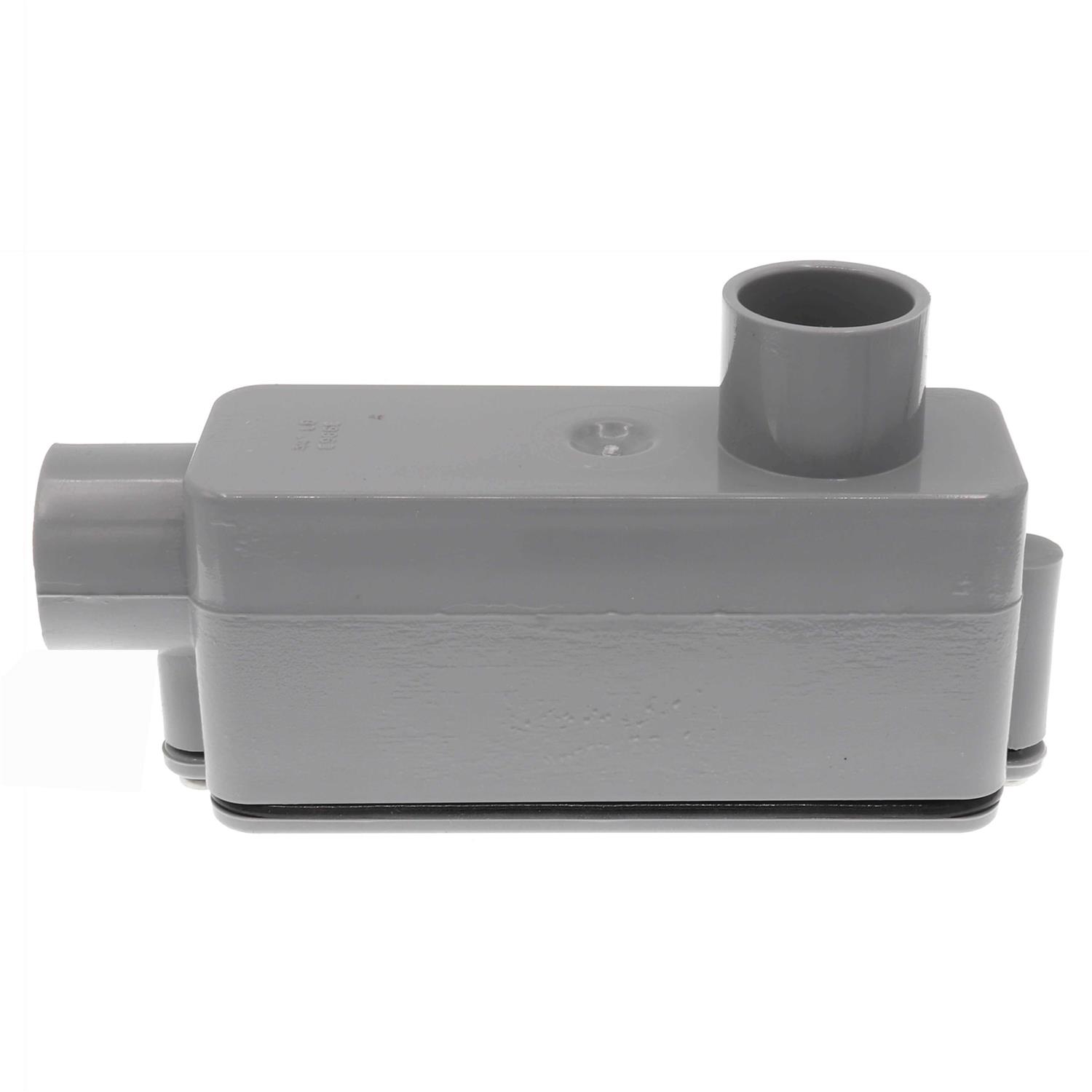 Carlon Threadless type LB conduit body is made of rigid PVC that offers strength and offers resistance against corrosion. It features foam-in-place gasket and textured lids. It measures 6-9/32″ x 1-3/4″ x 2-1/32″. It features straight hub location and 90 deg left back slide access opening. It comes with rectangular shape with cover. Conduit body has hub of size 3/4 inches and is designed to use with rigid/IMC conduit. Conduit body is UL listed and RoHS compliant.