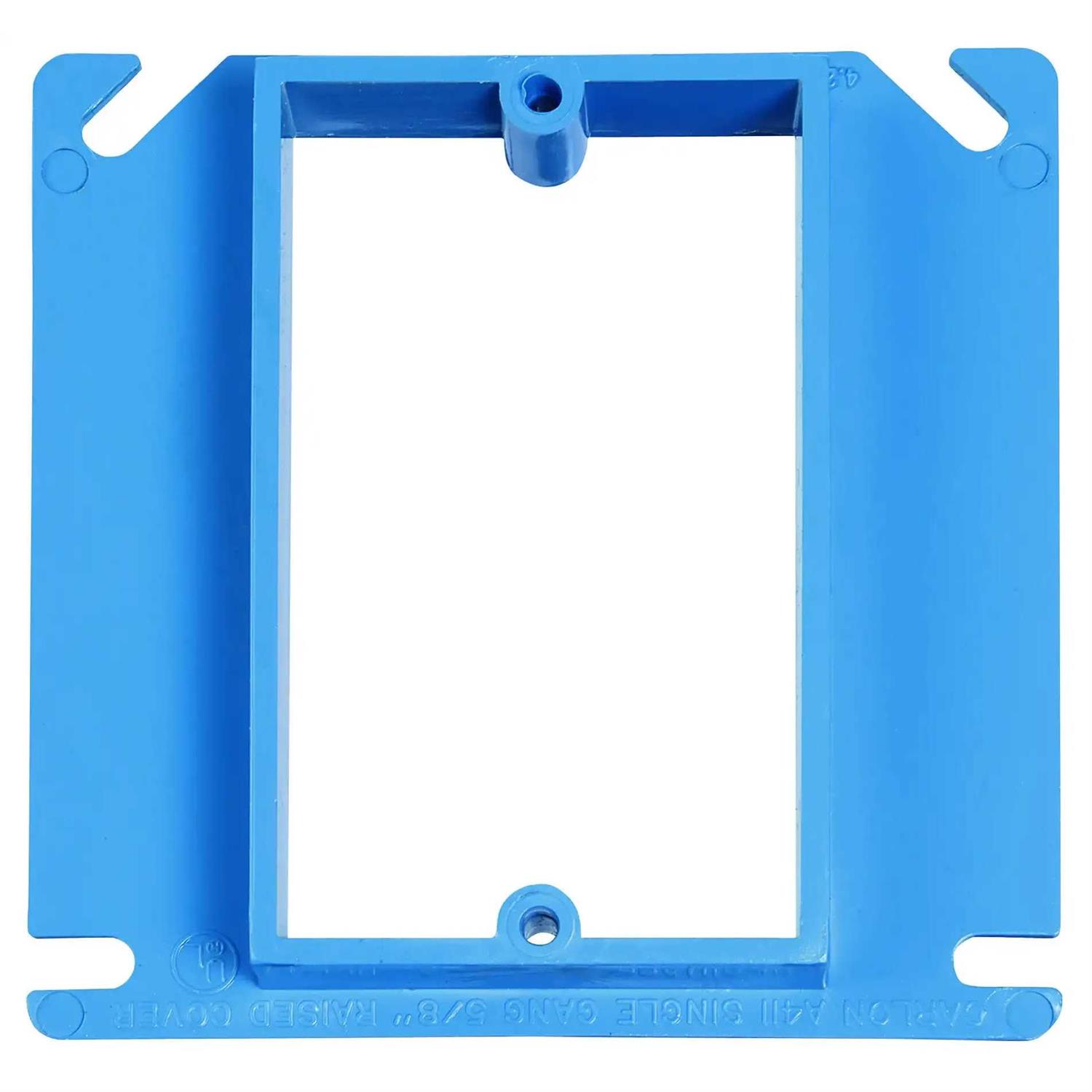 The 1-Gang ENT box cover is used to cover an ENT box or to reduce a 4 in. square box. Made of durable PVC material, the cover will not rust or corrode. The cover includes a 1/2 in. rise that increases box depth.