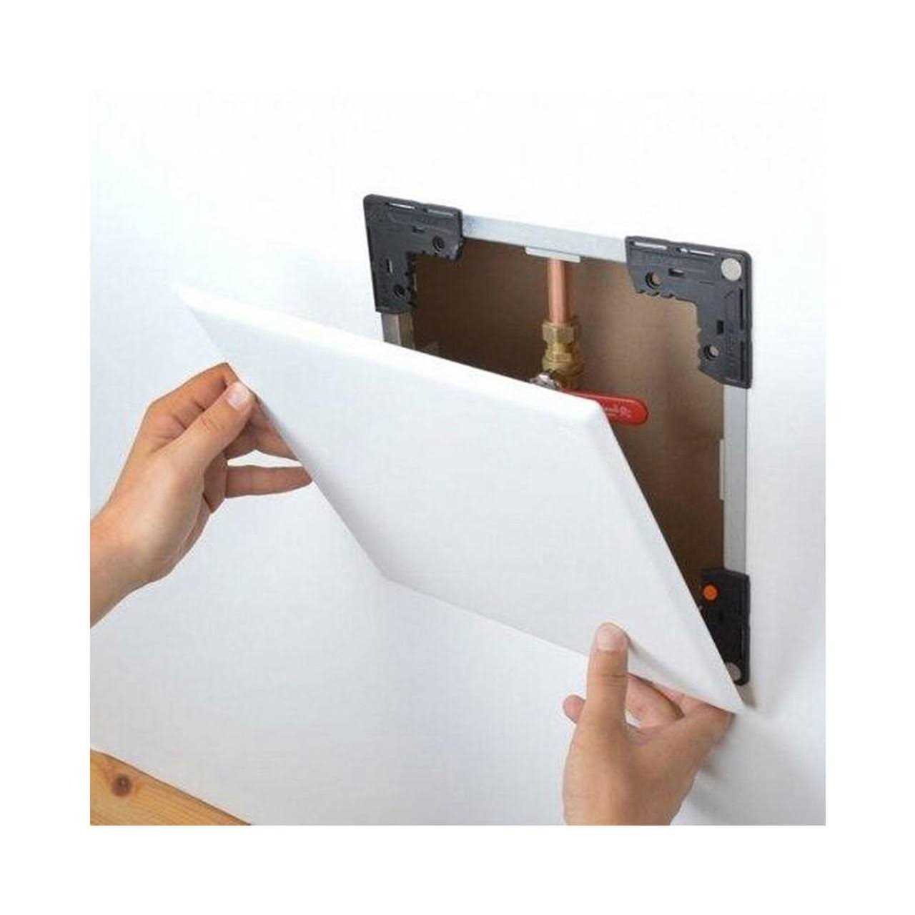 6.5″ x 8″FlexiPro Magnetic Adjustable Access Door FlexiPro is a magnetic access door panel for drywall that allows you to quickly access the items you want hidden, such as plumbing or electrical wires. It only takes two minutes to install on walls or ceilings with a minimal amount of tools. Powerful magnets hold the sturdy metal panel in place and the adjustable frame adapts to different openings in an instant.