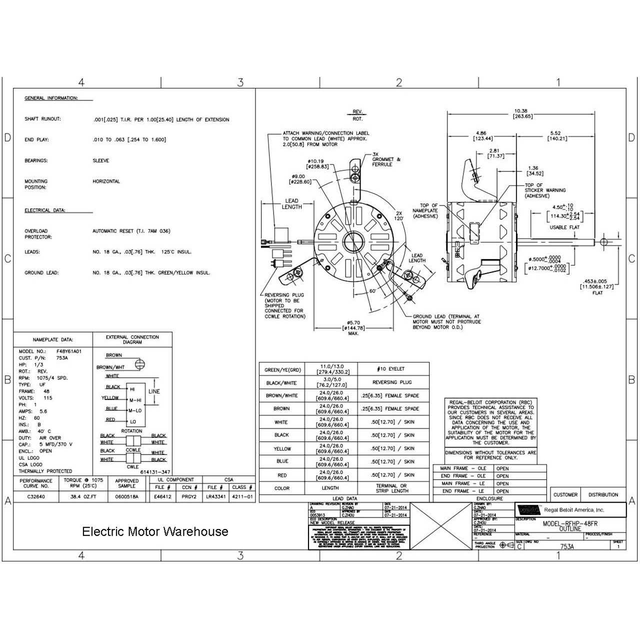 Century Motor,1/3 HP,1075 rpm,48,115V 753A