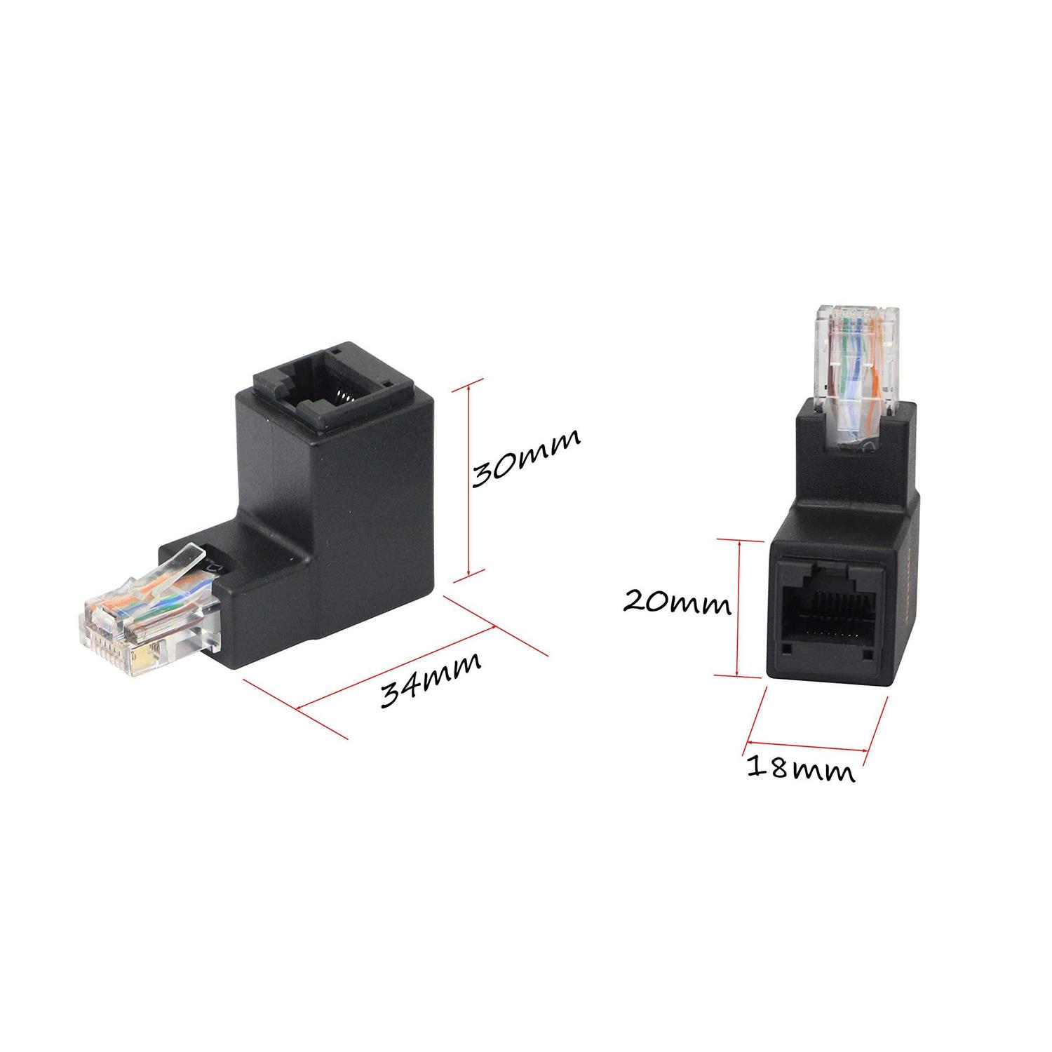 90 Degree Right Angle Up – Use an angled Ethernet adapter instead of an overly curved straight patch cable to connect to a small space behind the furniture or a network closet. – It is more conveniently and reasonably to connect your network equipments with RJ45 ports. Protection Equipment – RJ45 Network extender is perfect for extending your exsiting ethernet connection to reach a router or video steaming device; Protect the computer network port from constant plug and unplug. Gold Plated Connector – Gold-plated RJ45 connector ensures a high speed and efficient signal transfer.90 degree compact design, compact shape, space saving. Safe and Secure – Cat6 / Cat5e / Cat5 Standards RJ45 8P8C Cords. – Wiring standard: 568B.Strong ability of interference immunity and crosstalk. Applications: PC, computer server, printer, router, switch, network media player, NAS, Vo – IP phone, Po – E device, Hub, DSL, x – Box, PS2, PS3 and other LAN network components universal connection.