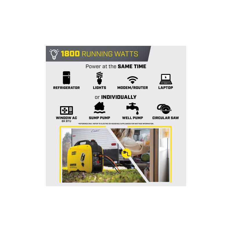 • 2,400 starting watts and 1,620 running watts Parallel-ready design.