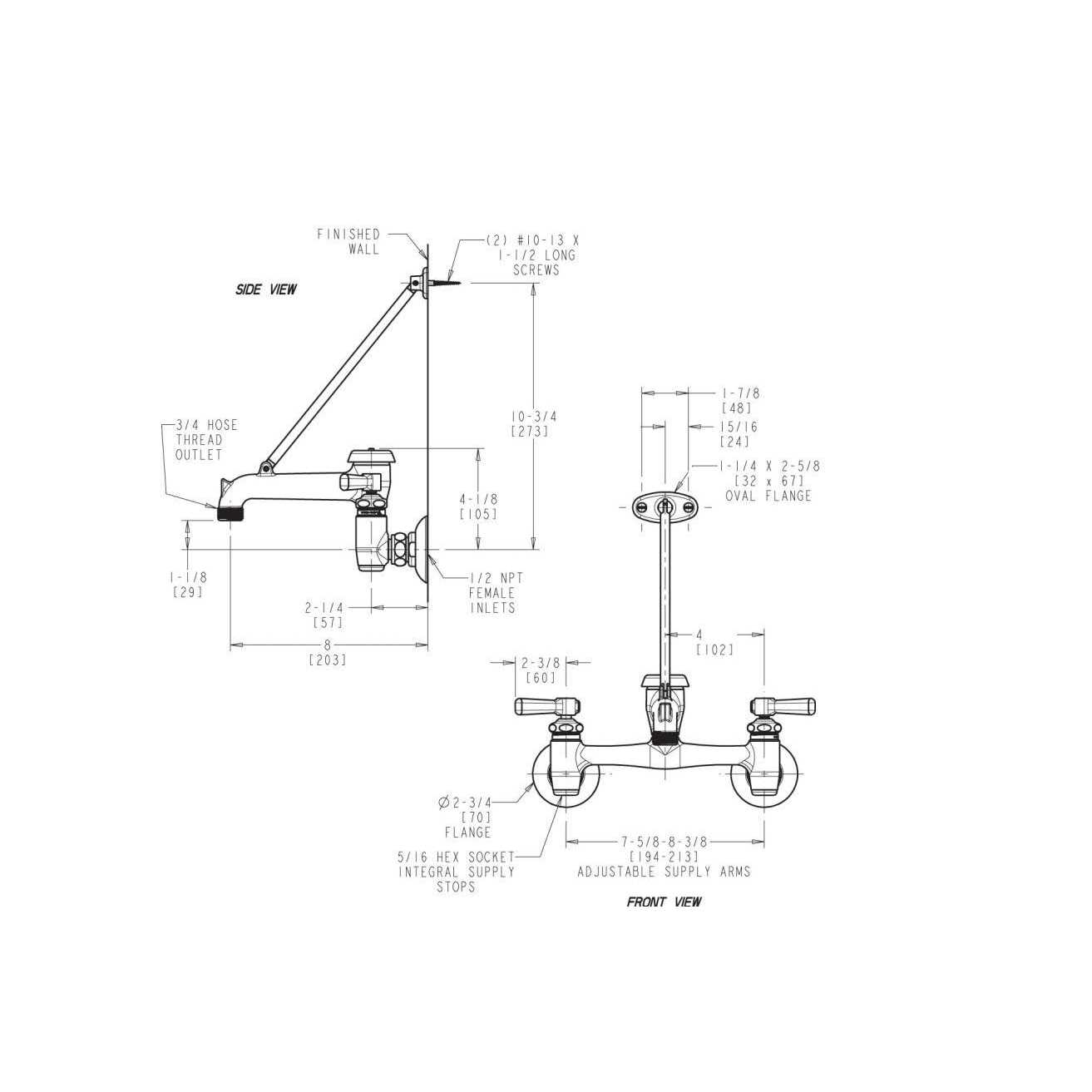 Chicago Faucets GIDDS-231318 897-RCF Wall Mount Adjustable Center Service Sink Faucet, Rough Chrome, 42.00 x 13.50 x 8.75 Inches
