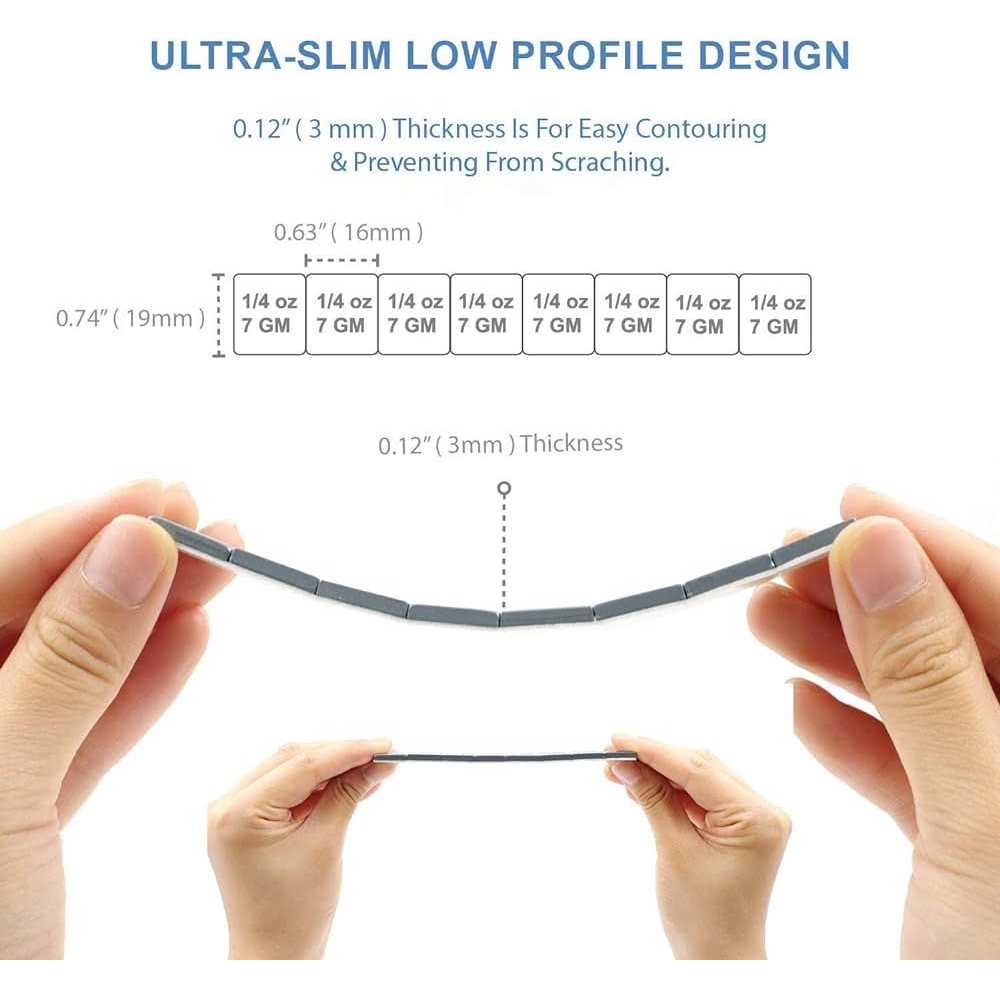 Superior Quality – High quality material is garanteed, close tolerance make sure the weight of the products are accurate. Anti-Corrosion – The surface layer of the wheel weights is first electrogalvanized, then apply multilayer and omni-dimension plastic spraying process. Eco-Friendly – The material of the products is lead-free, universal for 50 states. U.S White Tape – U.S made Four-Season Tape makes the perfect sticking results, wide paper backing disigned for easy peeling. Specification – 1 segment: 1/4 oz 1 strip: 8 segments 1 box: 6 strips In total 1box=6strips=48segments=12oz CKAuto brand Low Profile Adhesive Wheel Weights-Grey, U.S.standard and high quality is guaranteed. Providing safe tire system and safe driving. lead-free U.S. Premium adhesive wheel weights; CK U.S. made UltraStick white tape; CK EasyPeel makes the removal process more efficient Designed segments allows for easier contouring to the wheel shape when installing Perfect for wheel balancing, drapery curtain weights, various hobbies and crafts Specifications: 1 segment: 1/4 oz 1 strip : 8 segments 1 box: 6 strips In total 1box=6strips=48segments=12oz