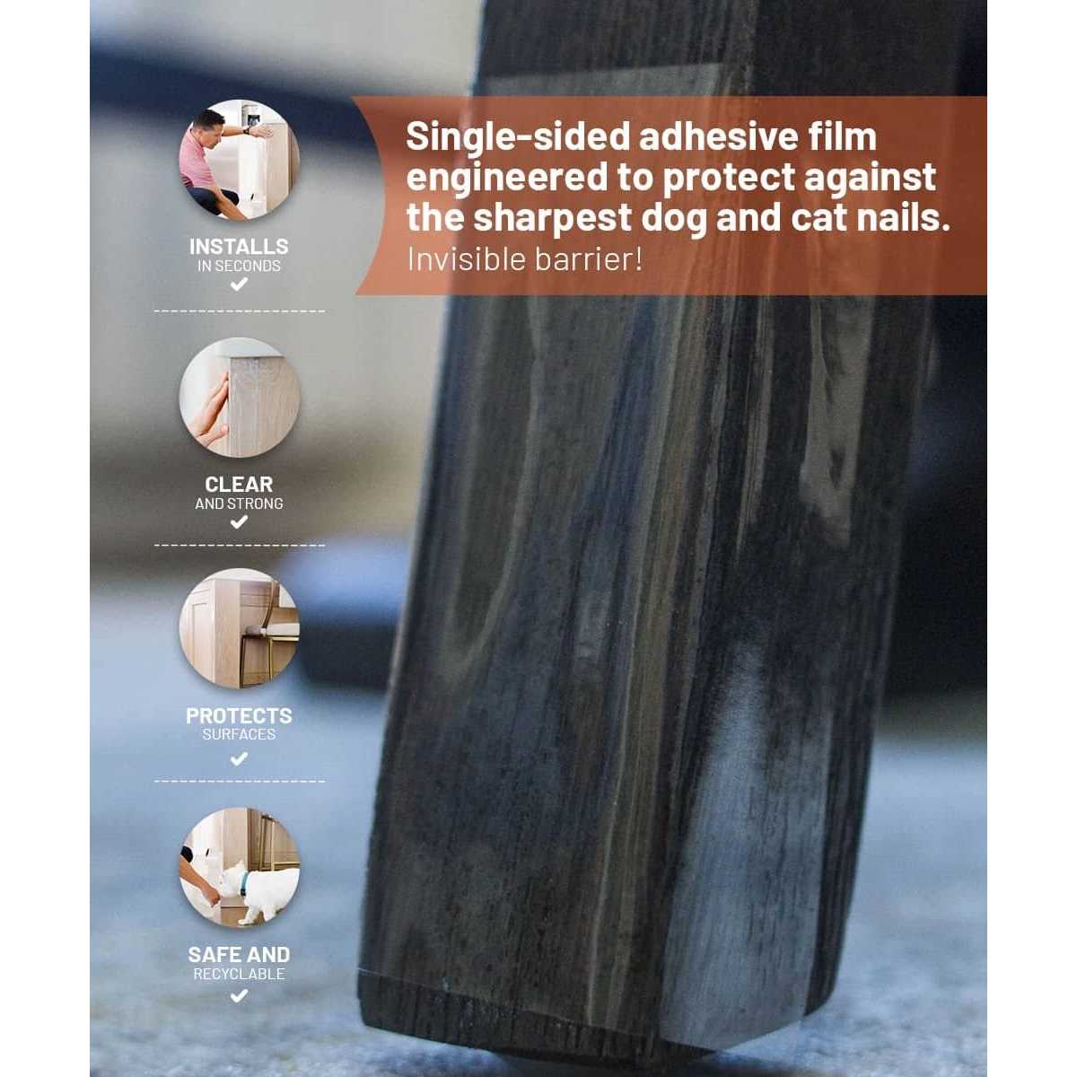 CLAWGUARD Scratch Barrier & Dispenser Protection Tape; If your pet loves to scratch, CLAWGUARD Scratch Barrier & Dispenser Protection Tape is a paw-some way to keep both her and your furniture safe! This protective tape is super easy to install-simply remove the tape’s liner, stick it in place, and smooth it out. In just a few seconds, your furniture will be guarded against all species of scratching sidekicks. On top of that, the ultra tough tape leaves no sticky residue and also prevents furniture from chipping and hurting your pal. For a simple, yet effective way to pet-proof your home, look no further than CLAWGUARD Scratch Shields Protection Tape! 10cm x 3m !! Clear to match decor. 12 mil durable protection. Cut to size with household scissors. 100% made in USA.