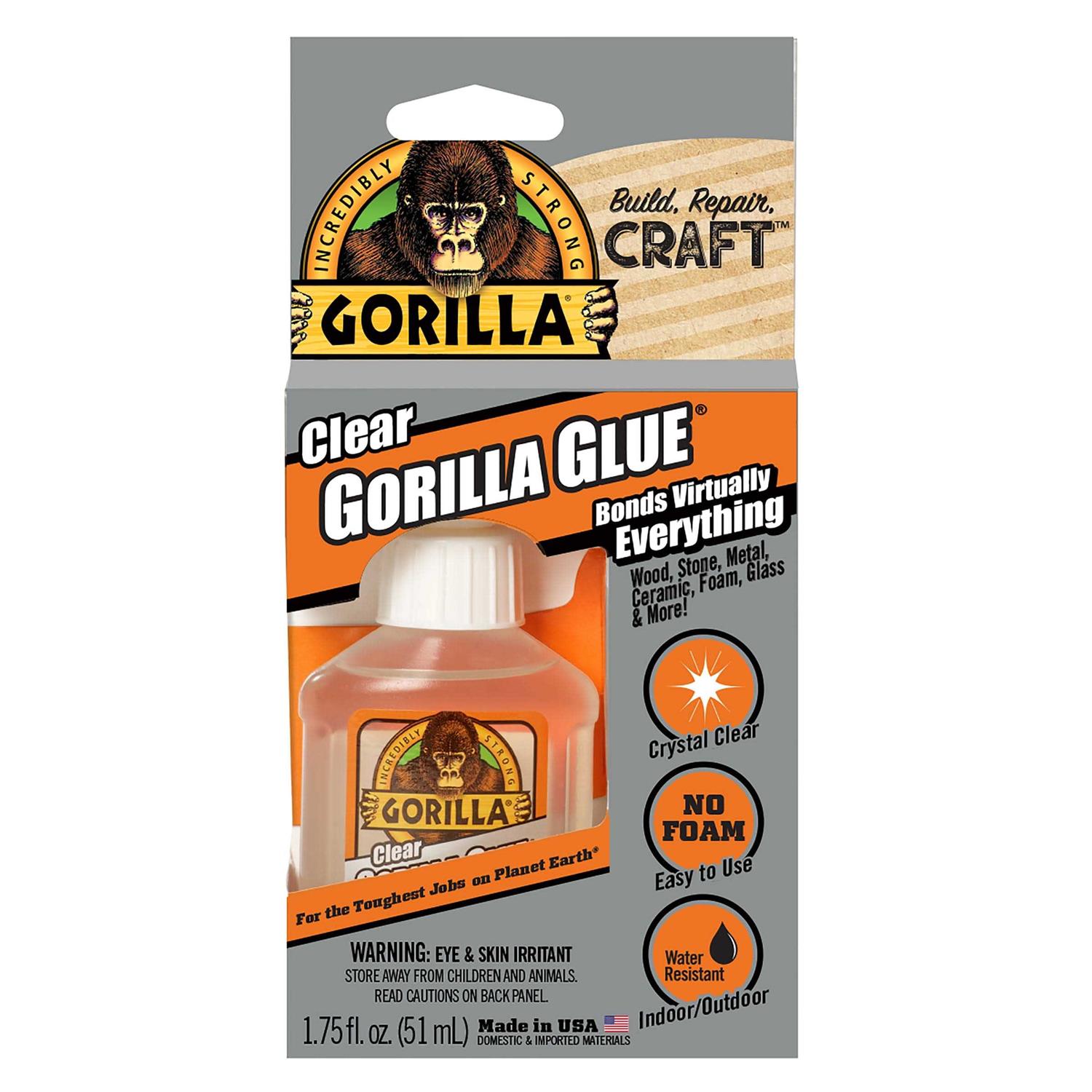 Clear Gorilla Glue, 1.75 oz, Dries Clear, 4-carton