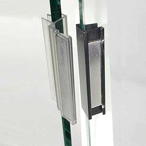 Can be used for 3/8″ running inline hinged shower door or fixed panel.Length: 3″ Glass Thickness: 3/8″Installation Instructions: Place the rubber gasket for the strike plate over the edge of the glass on the desired area and apply the U-Channel over the gasket (this may be a tight fit). If the u-channel does not fit over the gasket, you can remove the gasket and use clear silicone to secure the u-channel. Snap clear polycarbonate u-channel with magnet onto the fixed panel or a door.Package include: Polycarbonate U-Channel with Magnet and Aluminum U-Channel with metal strike plate