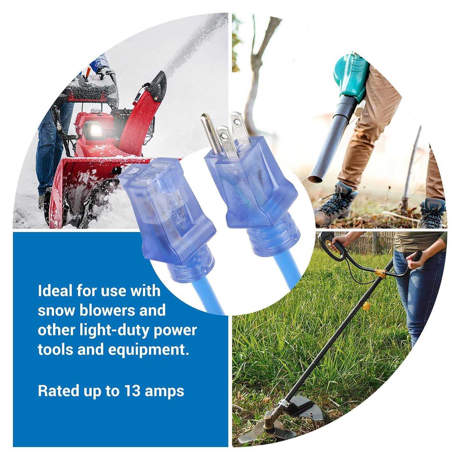 Clear Power 50 ft Extreme Cold Weather Outdoor Extension Cord, Lighted End, 16/3 SJTW, Works Down to -50°C, Power Indicator Light, 3-Prong Grounded
