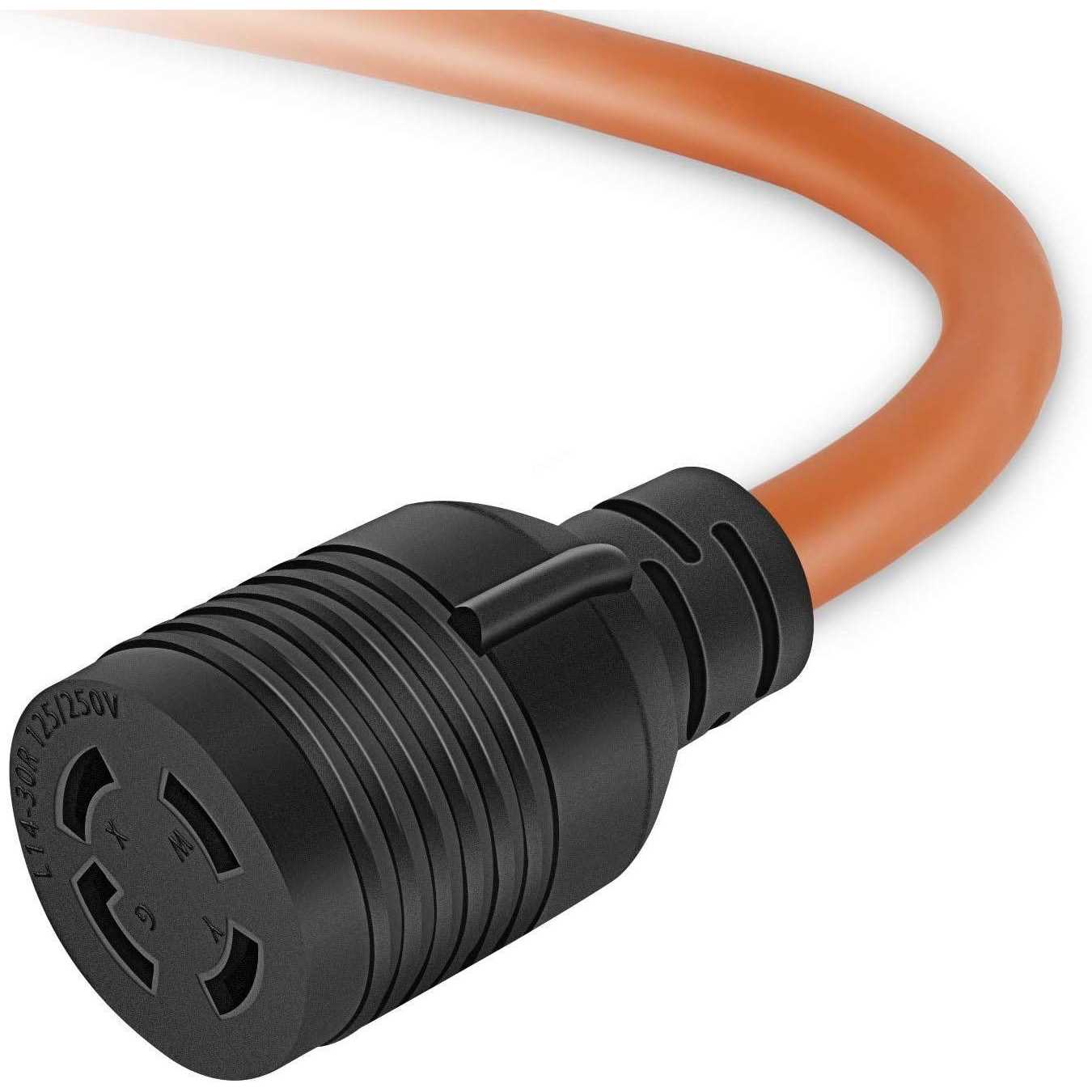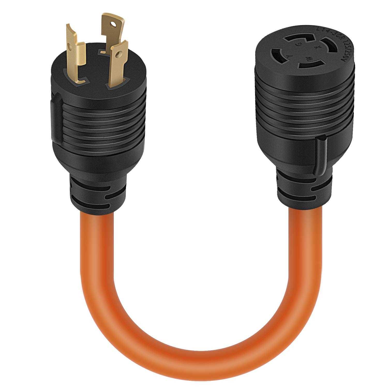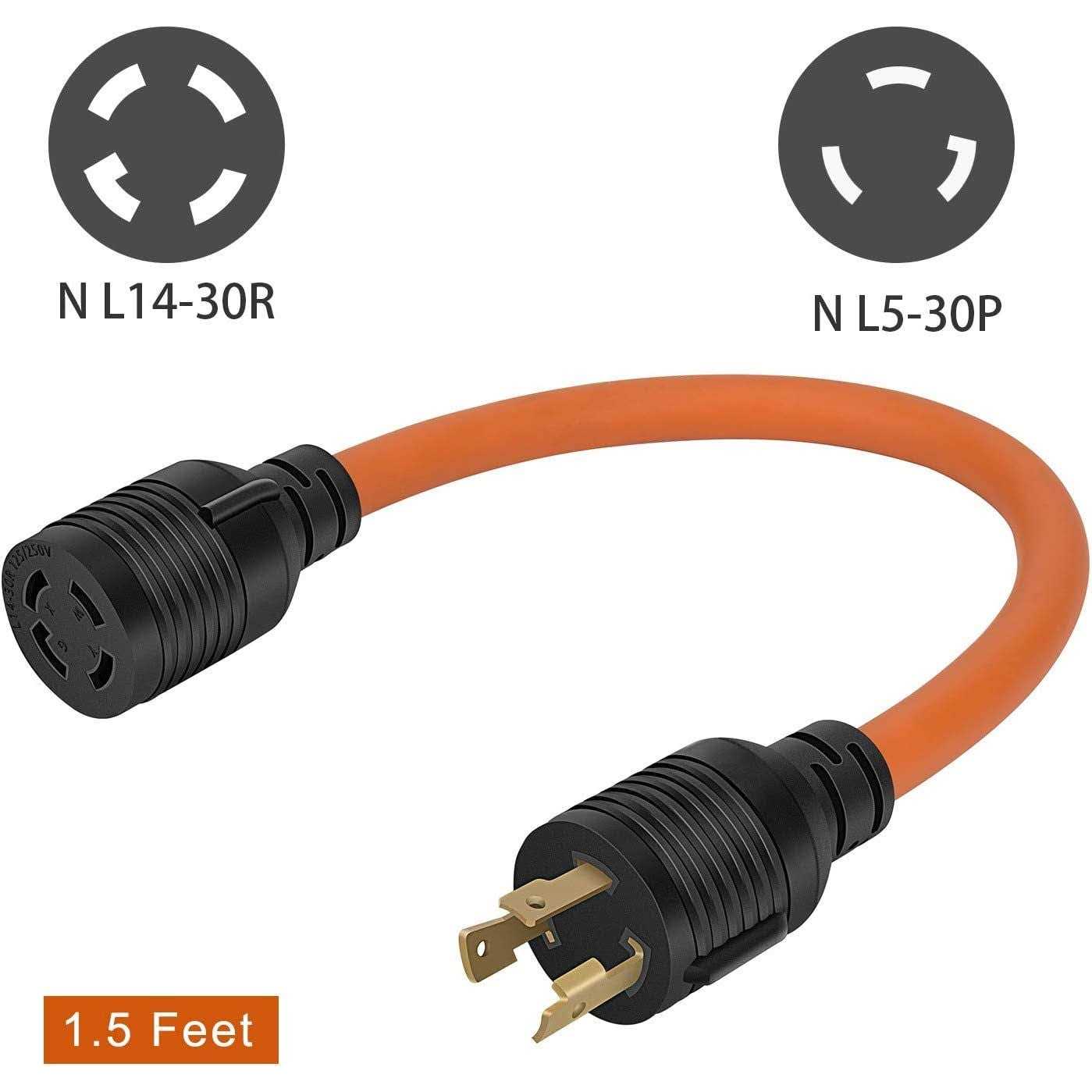 Cleyean adaptor helps you solve problems and it is a smart and direcrt Male to Male eletrical solution. Application: Nema L5-30P locking plug connect to generator outlet. Nema L14-30R receptacle connect to power transfer switch inlet. Connect generators 3 prong outlet to the 4 prong inlet box. High Quality: Heavy duty 10 AWG/3 cord, STW 600V standard,fire retardant.PVC material jacket, 100% copper wire for superior performance. Support max 30AMP current. Safty Certificate: NEMA L5-30P 3-prong plug 125V molded male. NEMA L14-30R 4-prong socket 125/250V molded female connector. Both are right angle, 30 AMP, Max wattage 7500 watts, 1.5 FT. Why Choose Us: Cleyean specializes in the production of various adapters cords. 100% tested with open/short/hi-voltage etc to ensure that each product received by our user can work perfectly.
