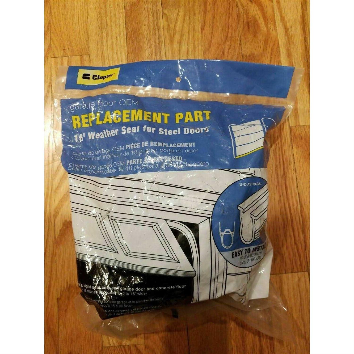 Provides a tight seal between your steel garage door and concrete floor with the Clopay Garage Door replacement bottom weather seal kit. This easy to install kit helps keep out items such as water, dirt, insects and pests from entering your garage. The flexible rubber even conforms to uneven floors to create that tight seal.