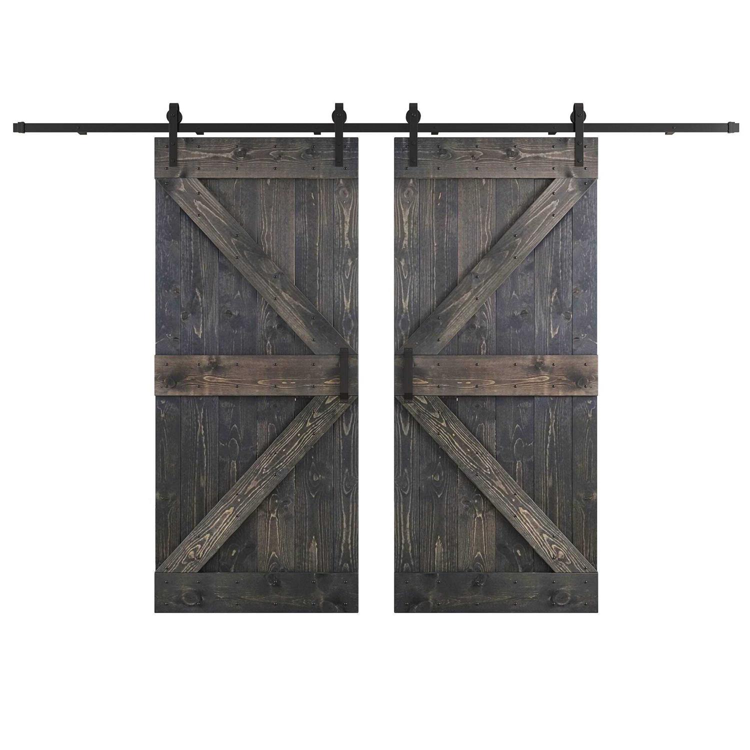 Coast Sequoia Inc K Series 76 in. x 84 in. Carbon Gray DIY Knotty Wood Double Sliding Barn Door with Hardware Kit