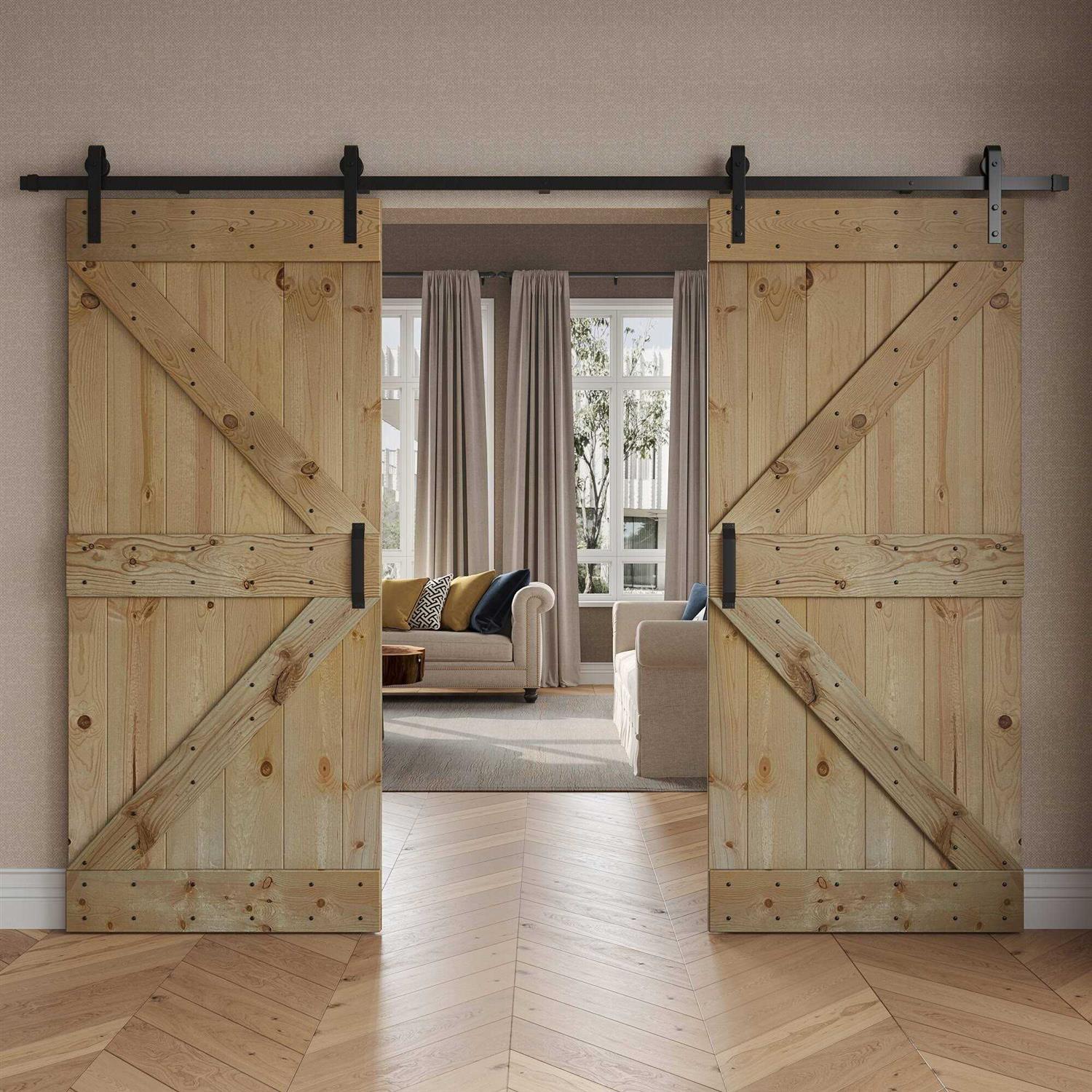 Coast Sequoia 84 in K Series DIY Knotty Wood Double Sliding Barn Door With Hardware Kit