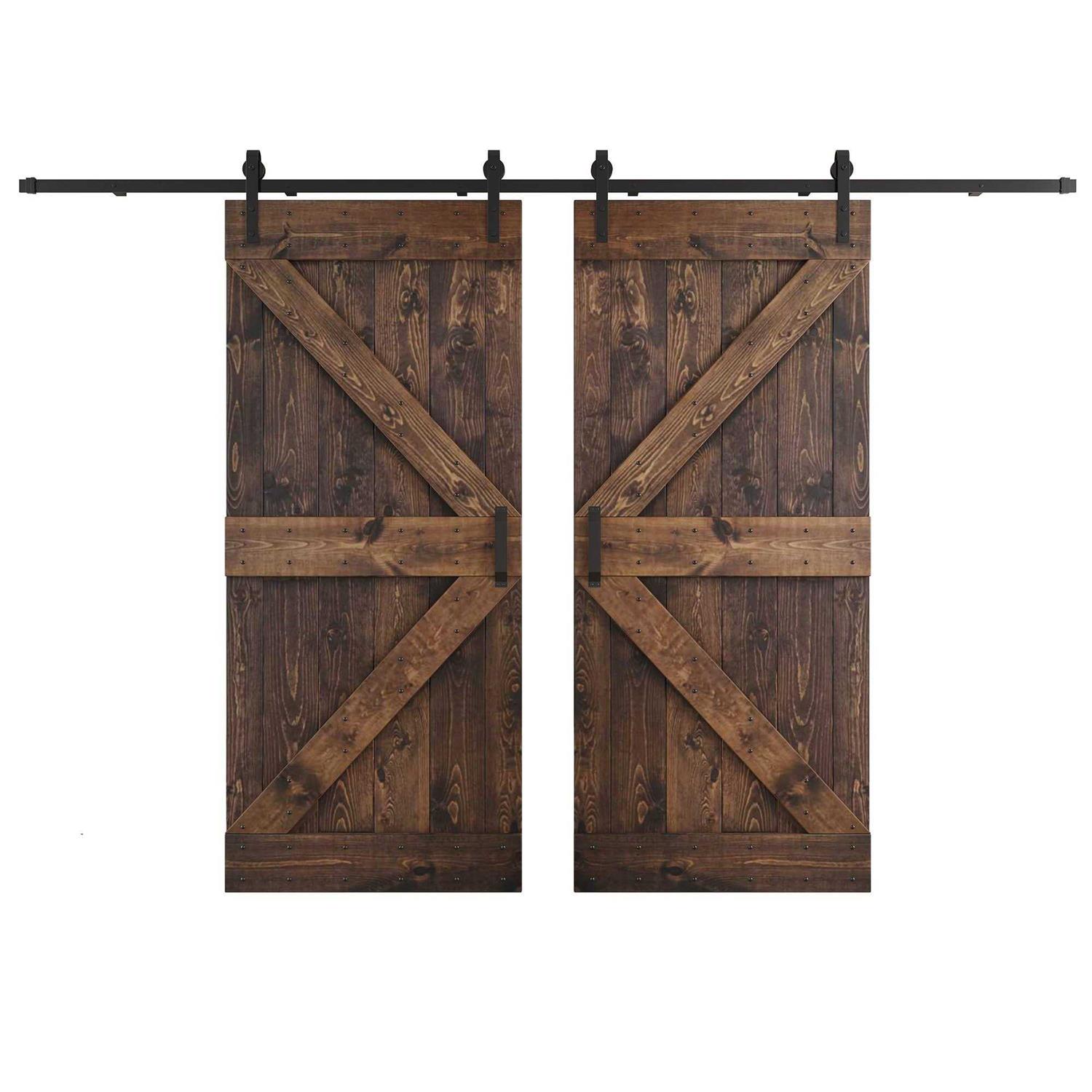 Coast Sequoia Inc K Series 76 in. x 84 in. Kona Coffee DIY Knotty Wood Double Sliding Barn Door with Hardware Kit