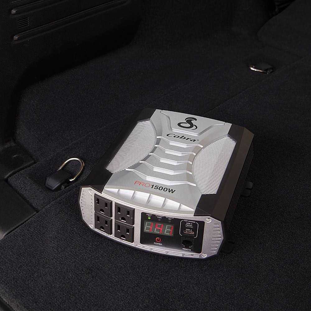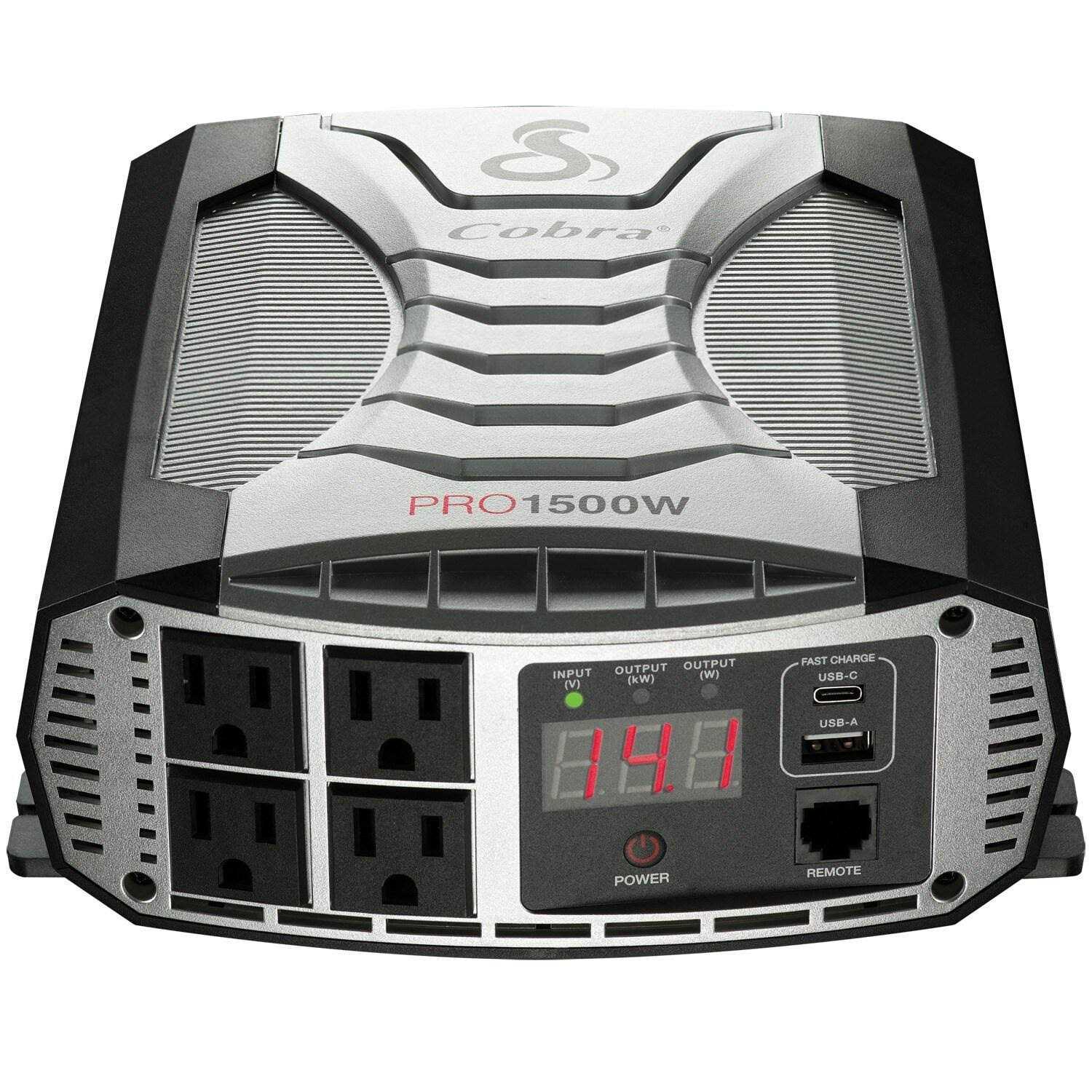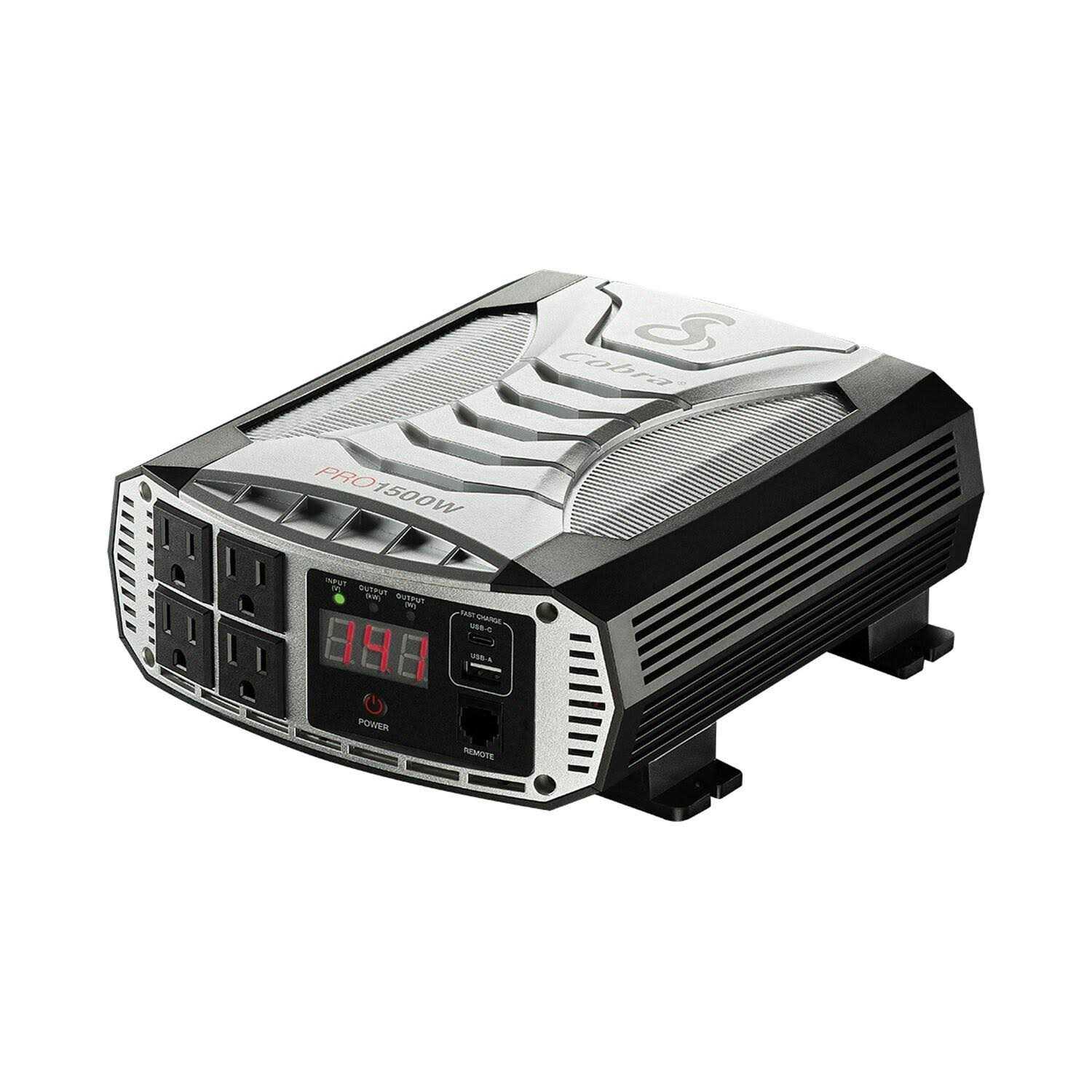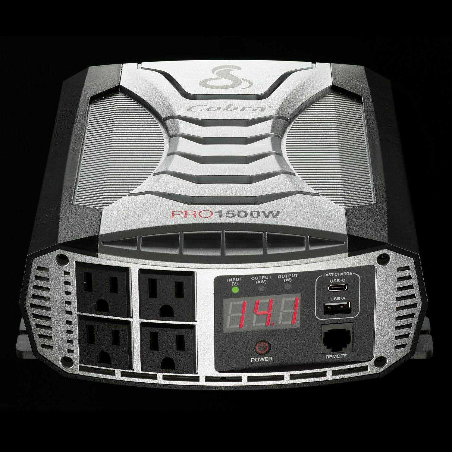 Harness the power of your vehicle’s DC battery! Power up your next pregame, add the convenience of home appliances on your next road trip, or even turn your car into a mobile office. The Cobra 1,500 Watt PRO Power Inverter turns your car battery into usable A/C household current. It is ideal for cross-country professional drivers, travelers, service contractors, campers, RV enthusiasts, or for when a power outage occurs. Count on Cobra for power where you need it.