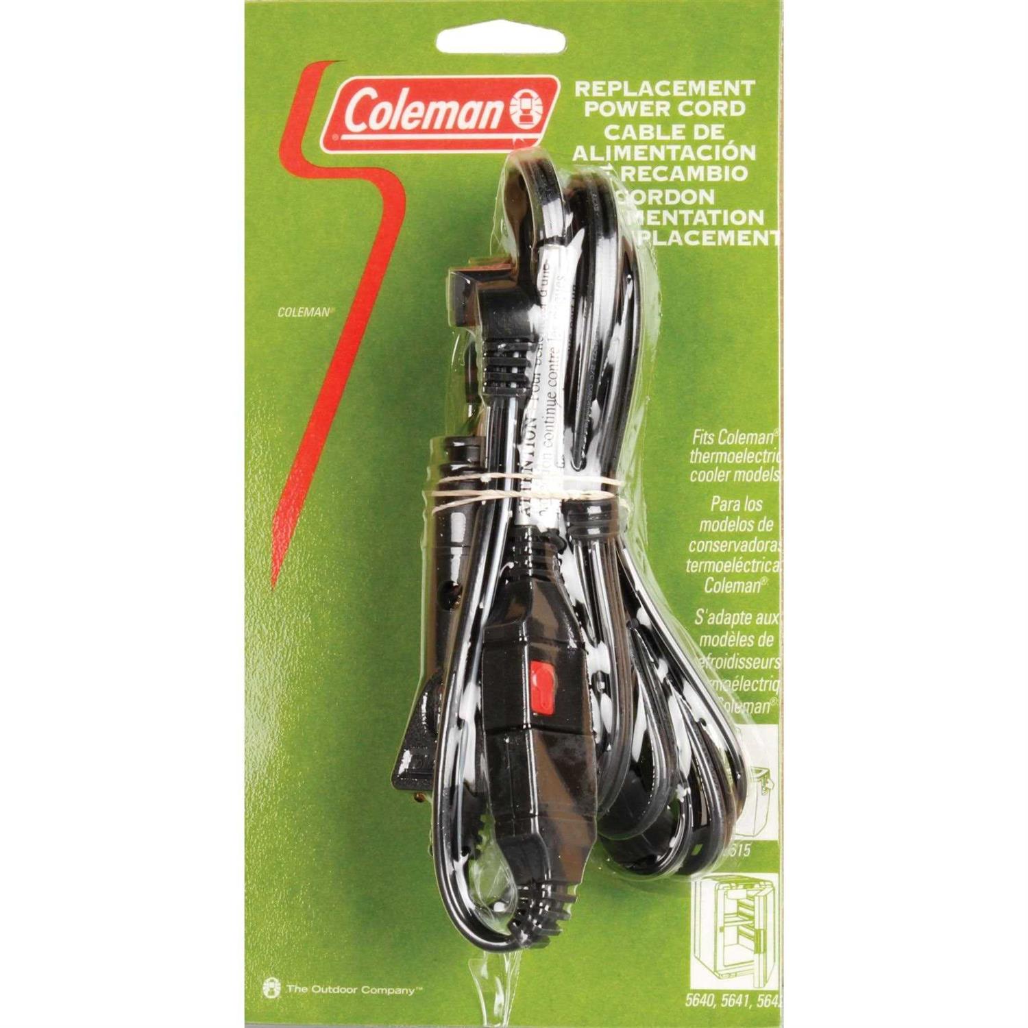 The Coleman Replacement Power Cord For Models 5615/5640/5641/5642/5644 5640366R is compatible with various coolers. It utilizes 18 AWG copper wire. This cooler power cord also has a red LED power light to indicate when the appliance is on or off.
