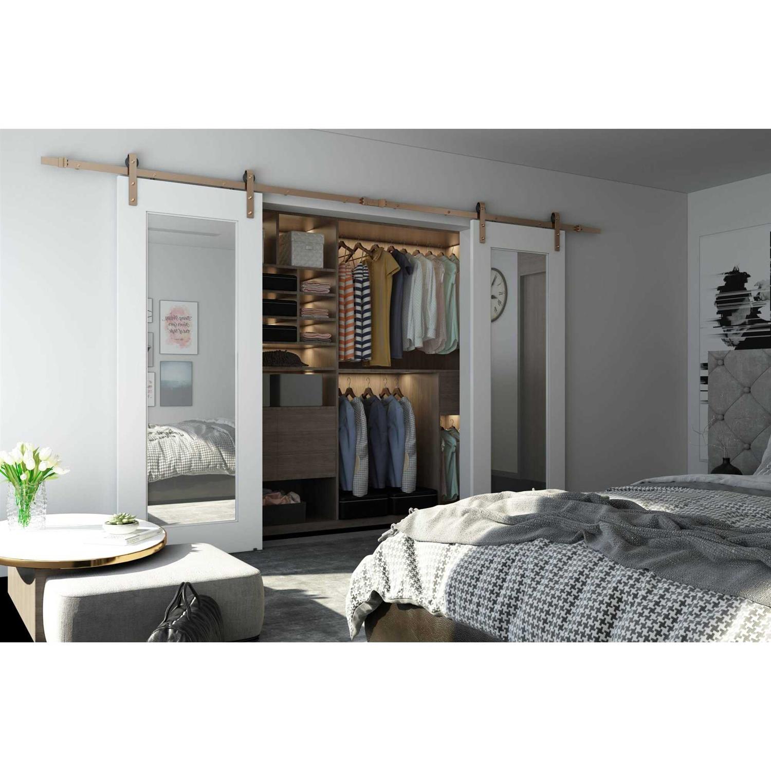 Whether it’s concealing a hallway or a bedroom, this dual-mirror panel Reflex style door is elegant proof you don’t need to choose between form and function. A wide pinewood frame highlights the centre, which is built with a large mirror into both sides to make morning routines a little easier. A minimalist masterpiece, all it needs is the addition of your favourite hardware.