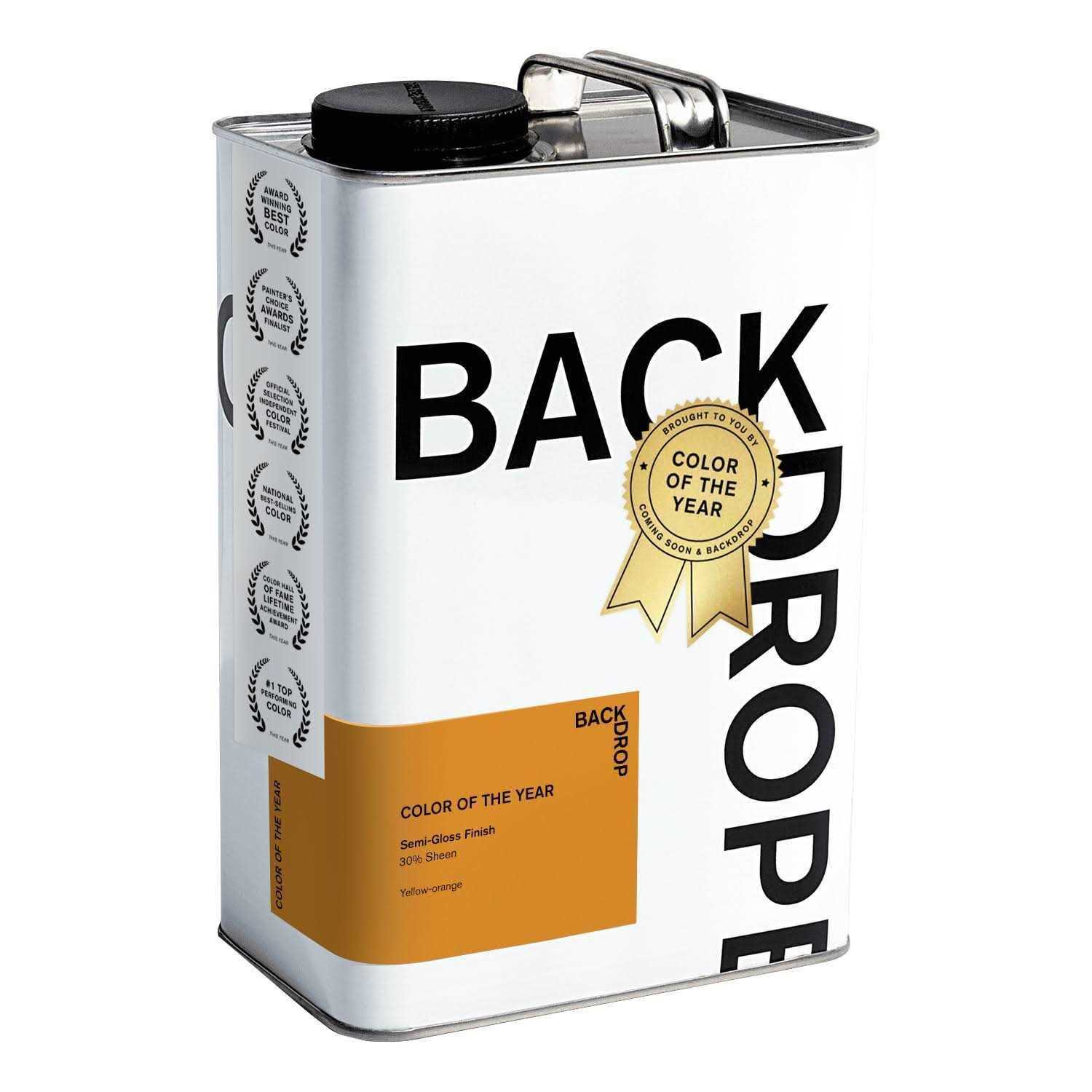 Yellow-orange premium cabinet and door paint in durable Semi-Gloss Finish with low odor and low VOCs (volatile organic compounds).