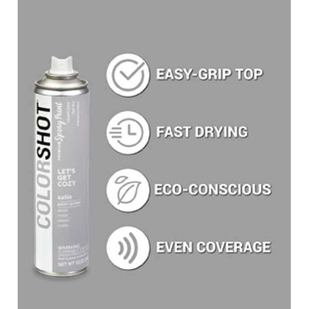 COLORSHOT Premium Spray Paint is designed to be everything regular spray paint isn’t. From the must-have selection of head-turning colors to the hardworking acrylic paint formula and sleek can design, no other spray paint allows you to play with color the way COLORSHOT does. Even better, the innovative COLORSHOT formula has a propellant made from sugar cane instead of petroleum, so you can feel good about the sweet decision to turn everything in your house a shade of Mermaid.