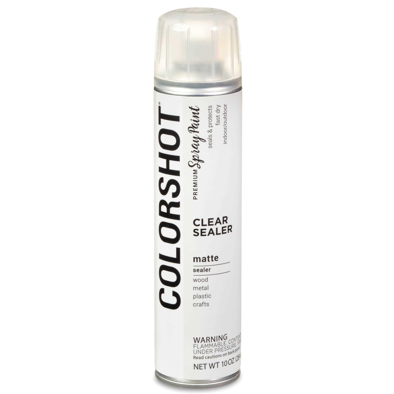 Seal your stunning ColorShot color with this ultra matte sealer. The innovative formula has a propellant made from sugar cane instead of petroleum. The fast drying spray paint formula does not require toxic dryers to cure and dries to the touch in 10 minutes. Its durable UV resistant with an ergonomic spray can for added comfort while applying. It works permanently on wood metal plastic and more. This package contains 10oz of spray sealer. WARNING Flammable. Contents under pressure. Conforms to ASTM D 4236. Imported.