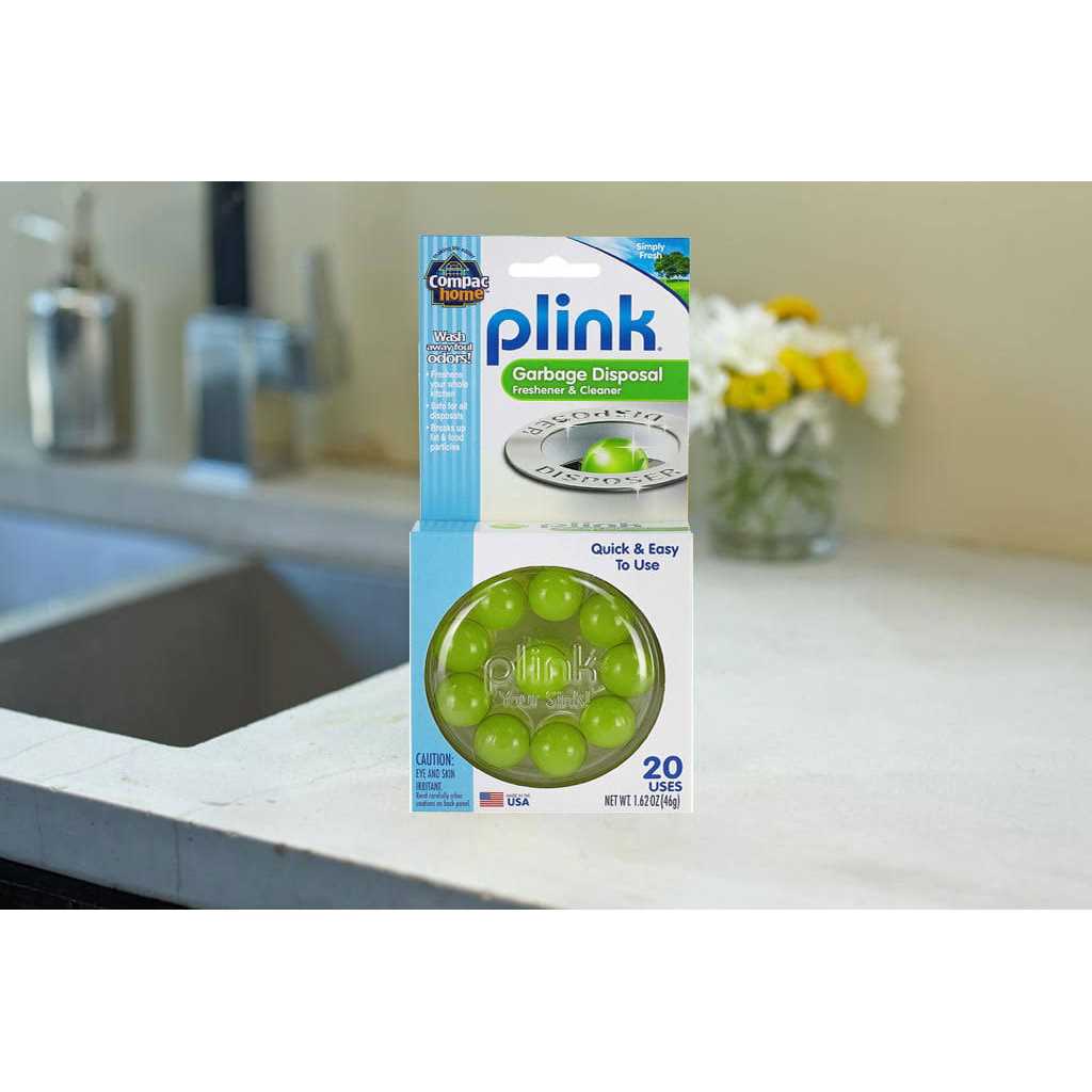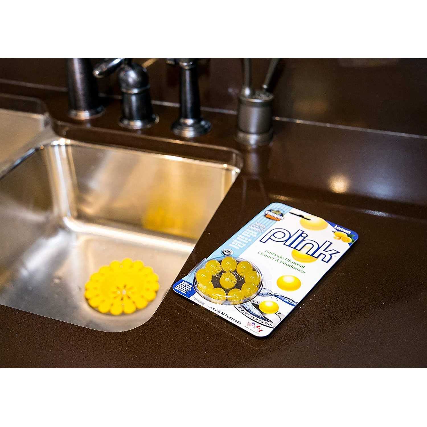 Freshen your kitchen and sink with just one ‘Plink.’ Plink Garbage Disposal Cleaner & Deodorizer is your answer to a fresh, clean-smelling kitchen without the hard work of scrubbing out your disposal. Invented by a plumber to work effectively in seconds, Plinks dissolve fatty deposits and food particles that get trapped in your disposal, causing odors to accumulate. Simply drop one Plink into your sink, run the hot water, and your kitchen smells fresh and clean. Plink’s scented pods contain a biodegradable liquid encased in a hard shell that releases once in your disposal to dissolve the fat and deodorize unpleasant odors. In fact, your whole kitchen will smell fresh and inviting after using a Plink. For best results, use with Sink Daisy to keep your kitchen constantly smelling wonderful. Even though all Plinks contain a bitter coating to discourage children from swallowing, it’s better to keep them out of reach of children.