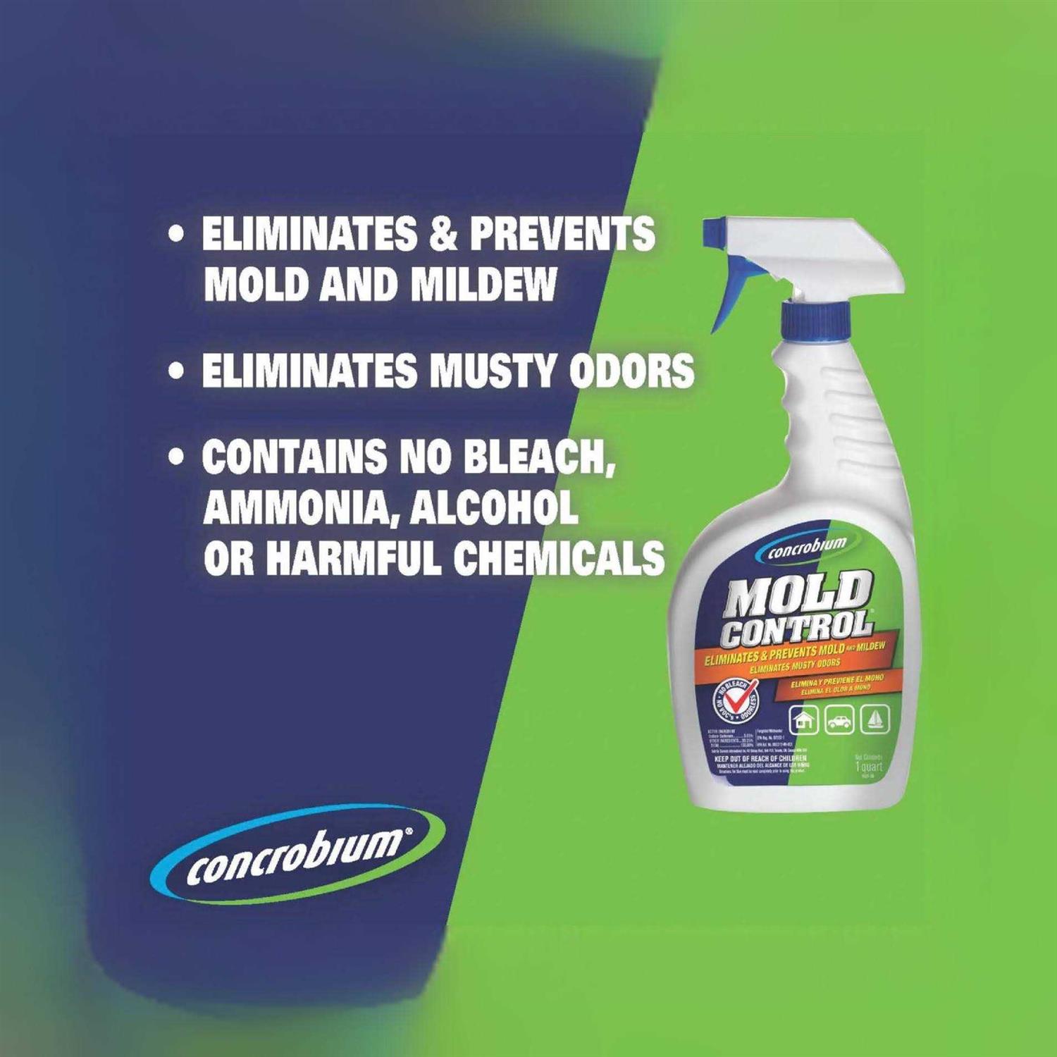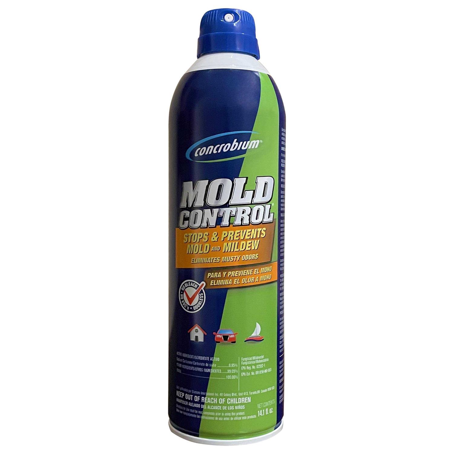 Concrobium Mold Control is a patented solution that effectively eliminates and prevents mold and mildew with no bleach or harmful chemicals. It can also be used to get rid of musty odors. The product works as it dries by crushing mold spores at the roots and leaves behind an invisible antimicrobial shield that prevents future mold growth. Use Concrobium Mold Control for mold and mildew clean-up and prevention, general interior maintenance, water damage restoration and during construction/renovation (paint prep and pre-treatment of building materials). Concrobium Mold Control aerosol is great for hard-to-reach places where the traditional trigger spray format would be difficult to apply. Use it under sinks, on ceilings, in cupboards and closets. The aerosols fine mist applicator is great for use on fabrics, curtains and carpets.