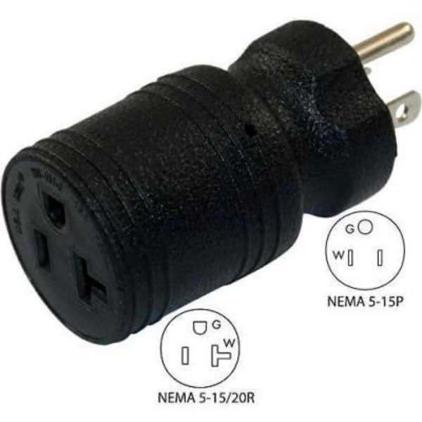 This convenient plug adapter allows a cord with a NEMA 5-20 plug to receive power from a US standard 5-15 3-Prong outlet commonly found in homes and on generator panels.