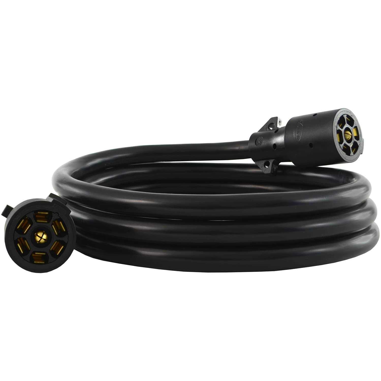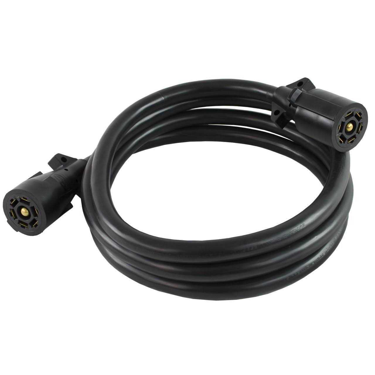 This trailer cord features a 7 way inline plug and a 7 Way inline plug. Simply connect the inline plug to the truck and the inline one to the trailer. The heavy-duty 8ft. cable comes in an attractive black finish.