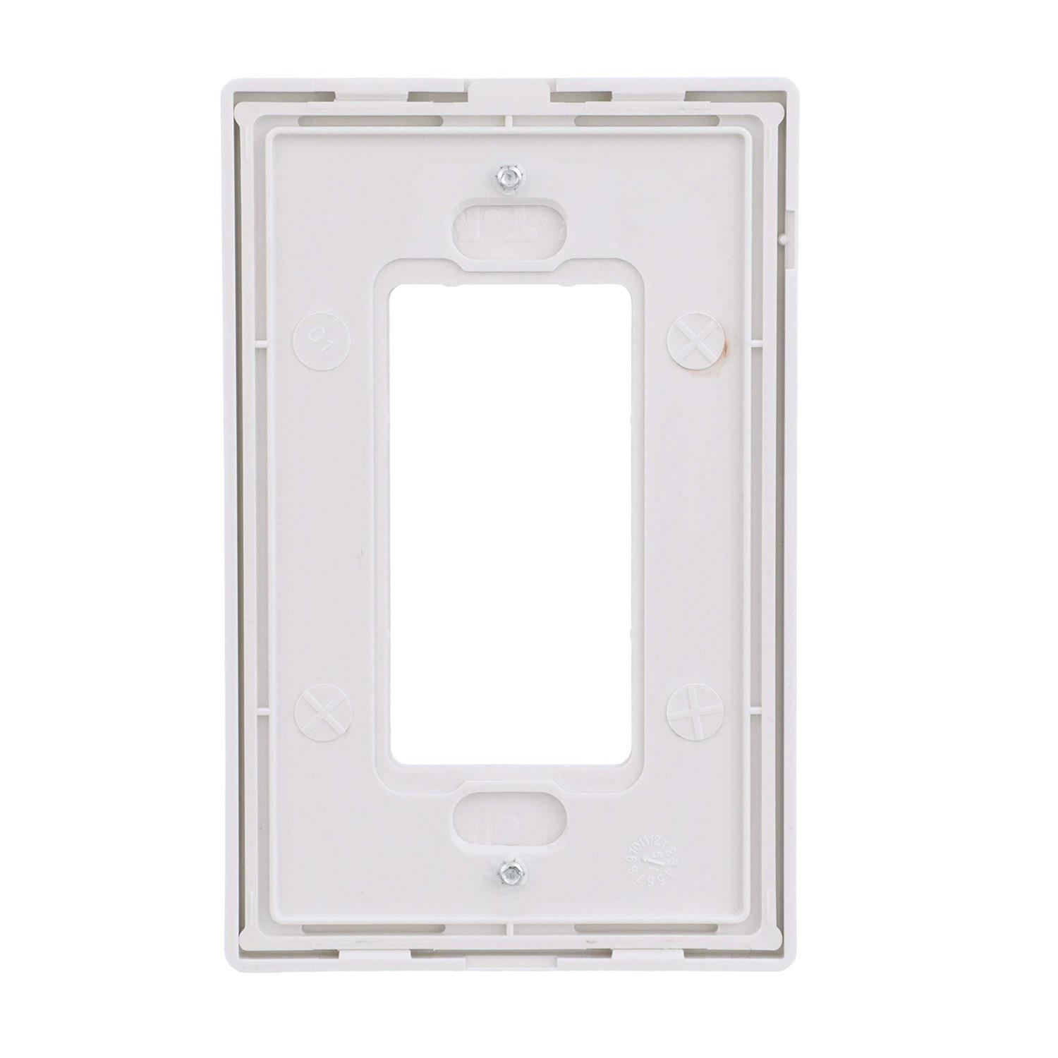 Screwless mid-size wall plate, virtually unbreakable and present a clean, minimalist look that can be changed in seconds. Easy installation, simply screw the mounting plate onto the wiring device and press into place. 4.875 inch x 3.125 inch.