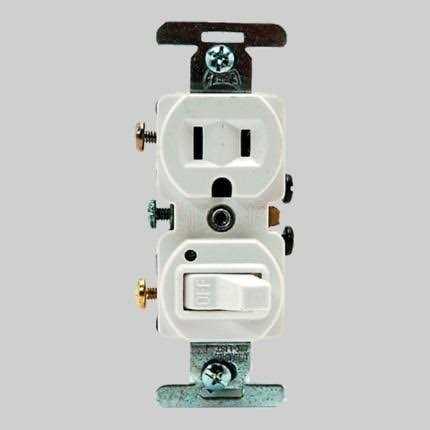 Traditional heavy-duty-grade combination switch with receptacle features UL listed tamper-resistant shutters designed to prevent the insertion of foreign objects. TR274 features a neon pilot light which is On when switch is On. Switch is horsepower-rated for motor loads per UL 20. Thermoplastic toggle, top and backbody are virtually unbreakable to deliver years of durable performance. Ultrasonic welding and integrated construction of the strap and body provide excellent ground integrity even under heavy use. Durable, injection molded housings and PVC resin comply with UL94 V0 flammability ratings. Tri-combo screw heads offer greater installation flexibility. Steel mounting strap is zinc-plated for added corrosion resistance. Steel mounting strap is zinc-plated for added corrosion resistance. Convenient patented built-in wire stripper speeds installation. Back wire clamps on side terminals provide for easy installation of #12 and #14 AWG wire. Terminal screws are backed out and ready for wiring to enhance ease of installation. Break-off provision for wiring both devices on the same circuit or on separate circuits. Triple-wipe blade contacts and double-wipe ground contacts to insure long-term plug retention. Automatic grounding system eliminates need for bonding jumper in grounded metal enclosure and provides redundant measure of ground continuity where jumper is used.